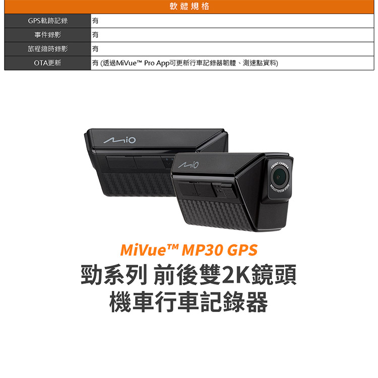 Mio MiVue MP30 GPS 勁系列 前後雙2K鏡頭 機車行車記錄器(送-64G卡) 行車紀錄器