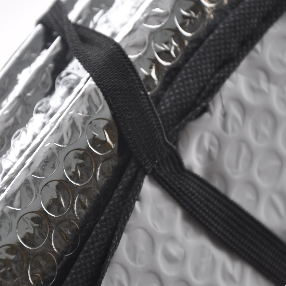 5.收納時請勿用力拉扯彈性束帶,以免弄壞遮陽板。