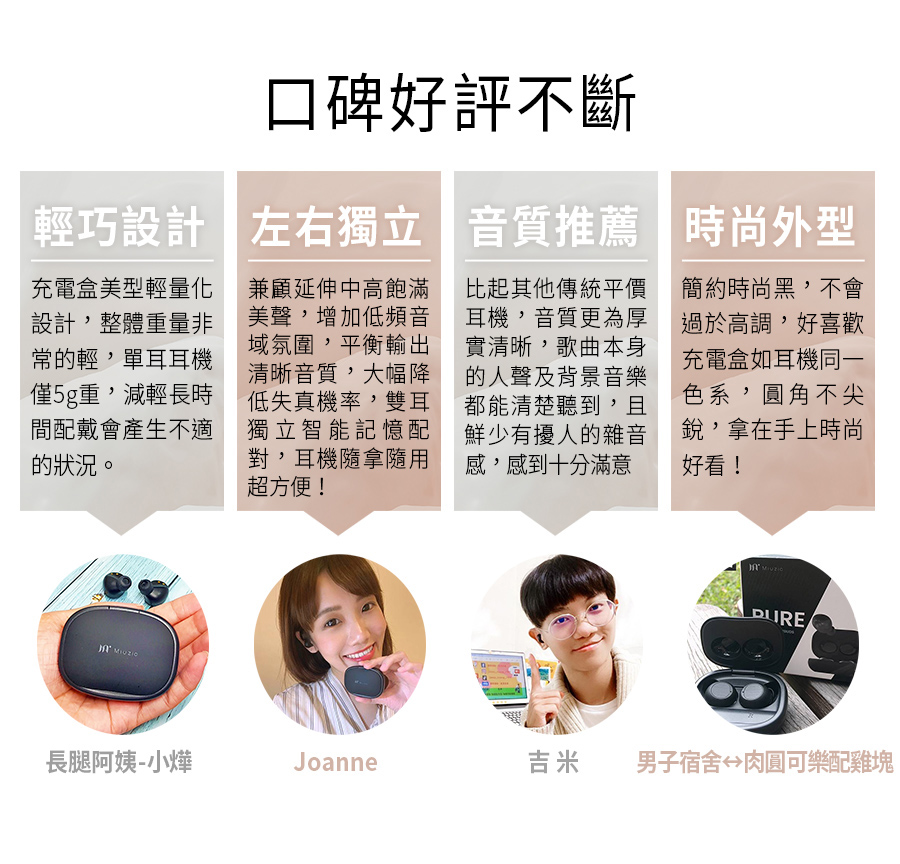【miuzic沐音】Pure輕時尚低音環繞真無線藍牙耳機 P1