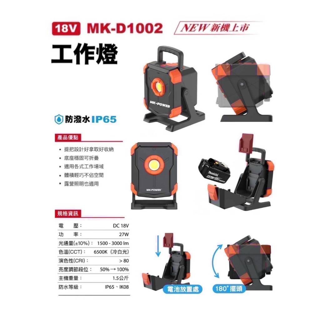 WIN五金 MK-POWER MK-D1002 18V探照燈 照明燈 探照燈 照明燈 露營燈 工作燈 防潑水 工地照明