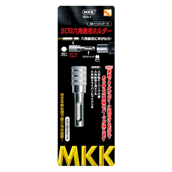 可將六角軸柄尖端工具安裝到 SDS 專用鑽頭等上的轉接器。所有六角軸零件只需將其安裝到振動支架上即可使用。