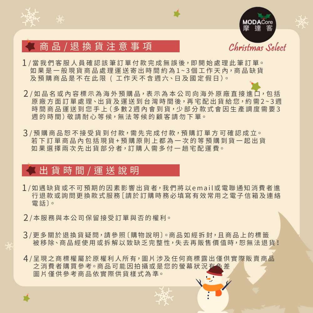 【退/換貨&售後服務】