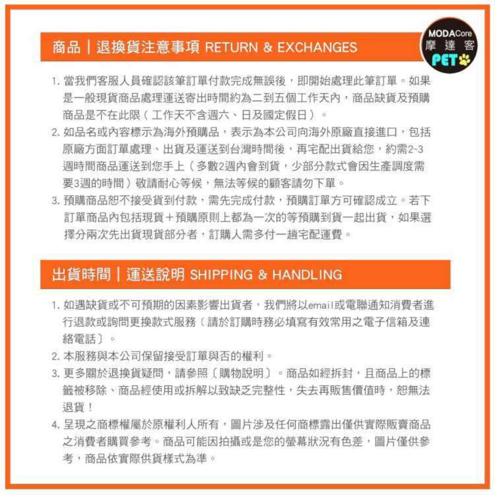 【退/換貨&售後服務】