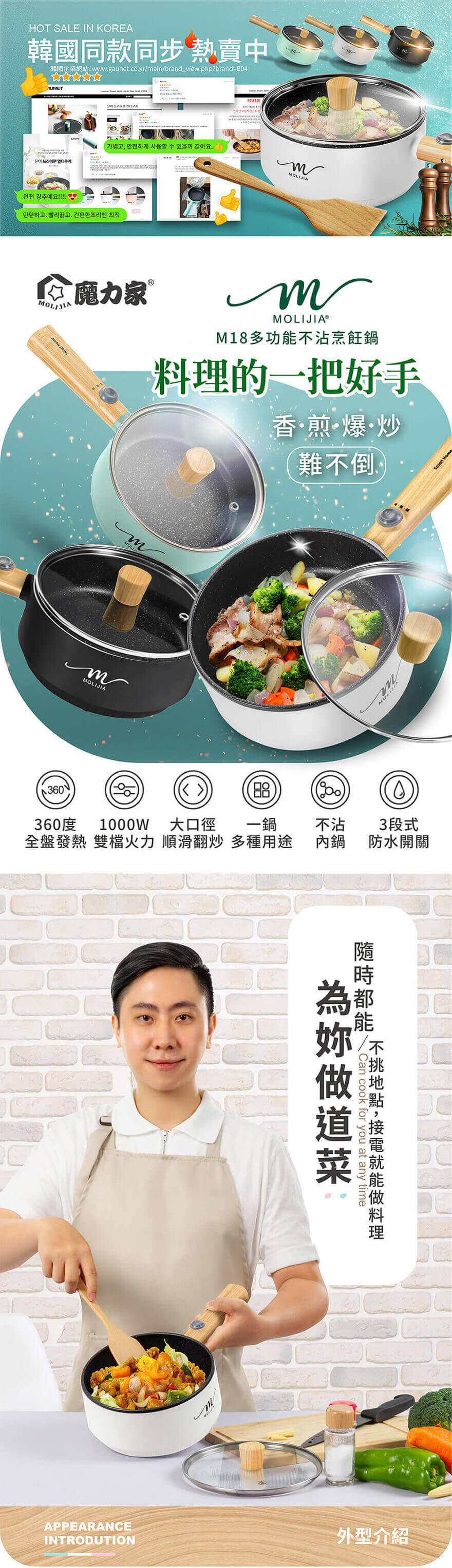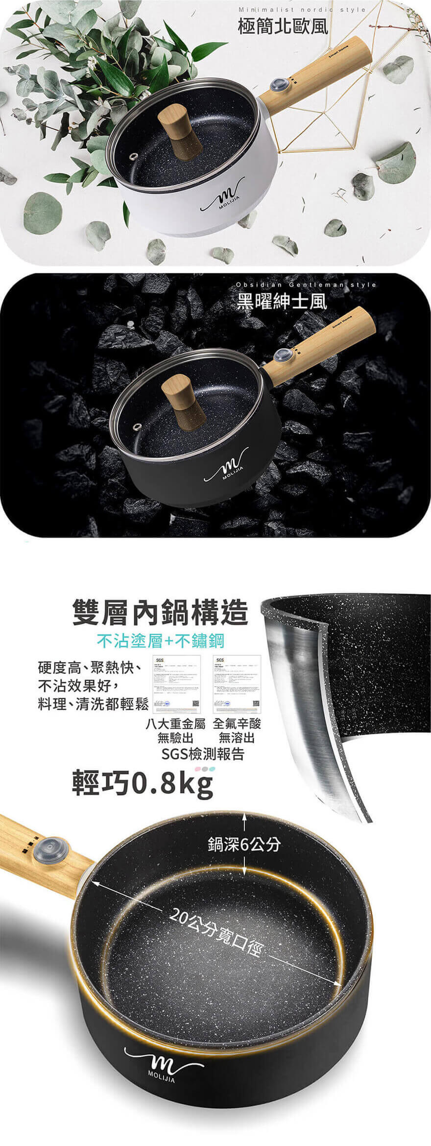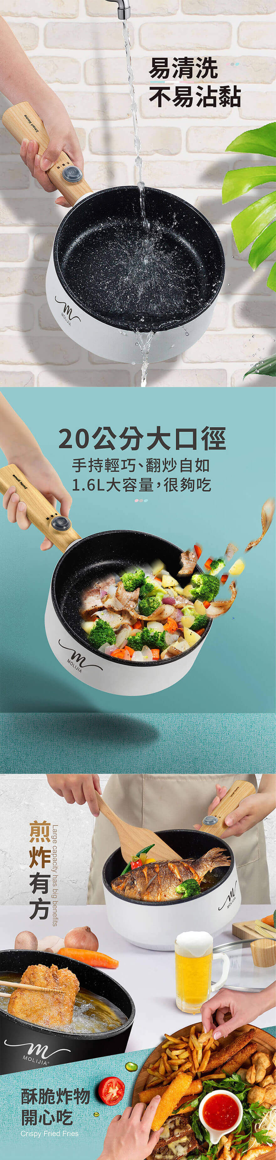 產品名稱:【MOLIJIA 魔力家】M18雙層防燙麥飯石不沾電煎烹飪鍋-木紋款