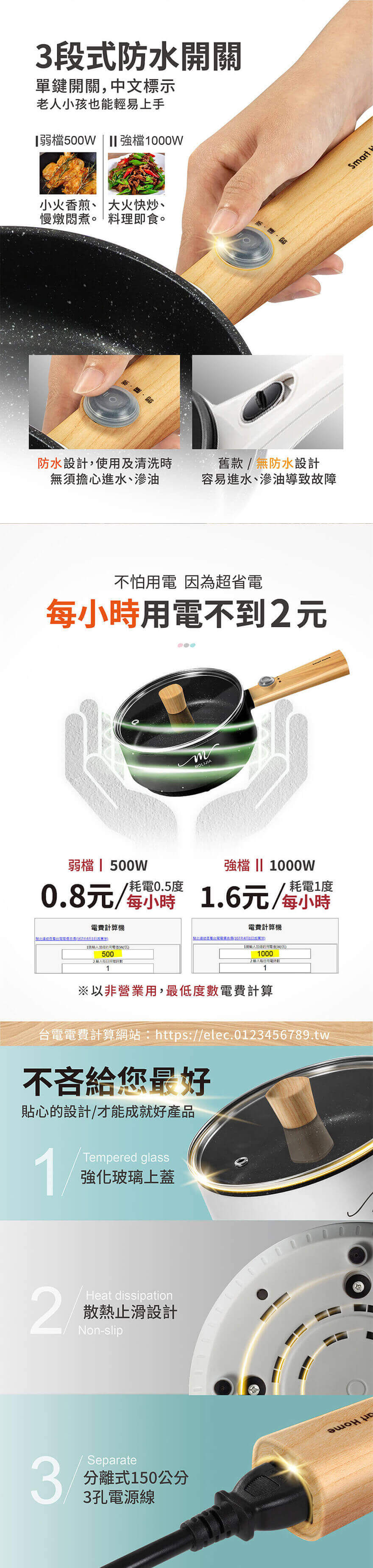 包裝內容物:不沾平底鍋X1 + 強化玻璃蓋X1 + 分離電源線X1 + 說明書X1