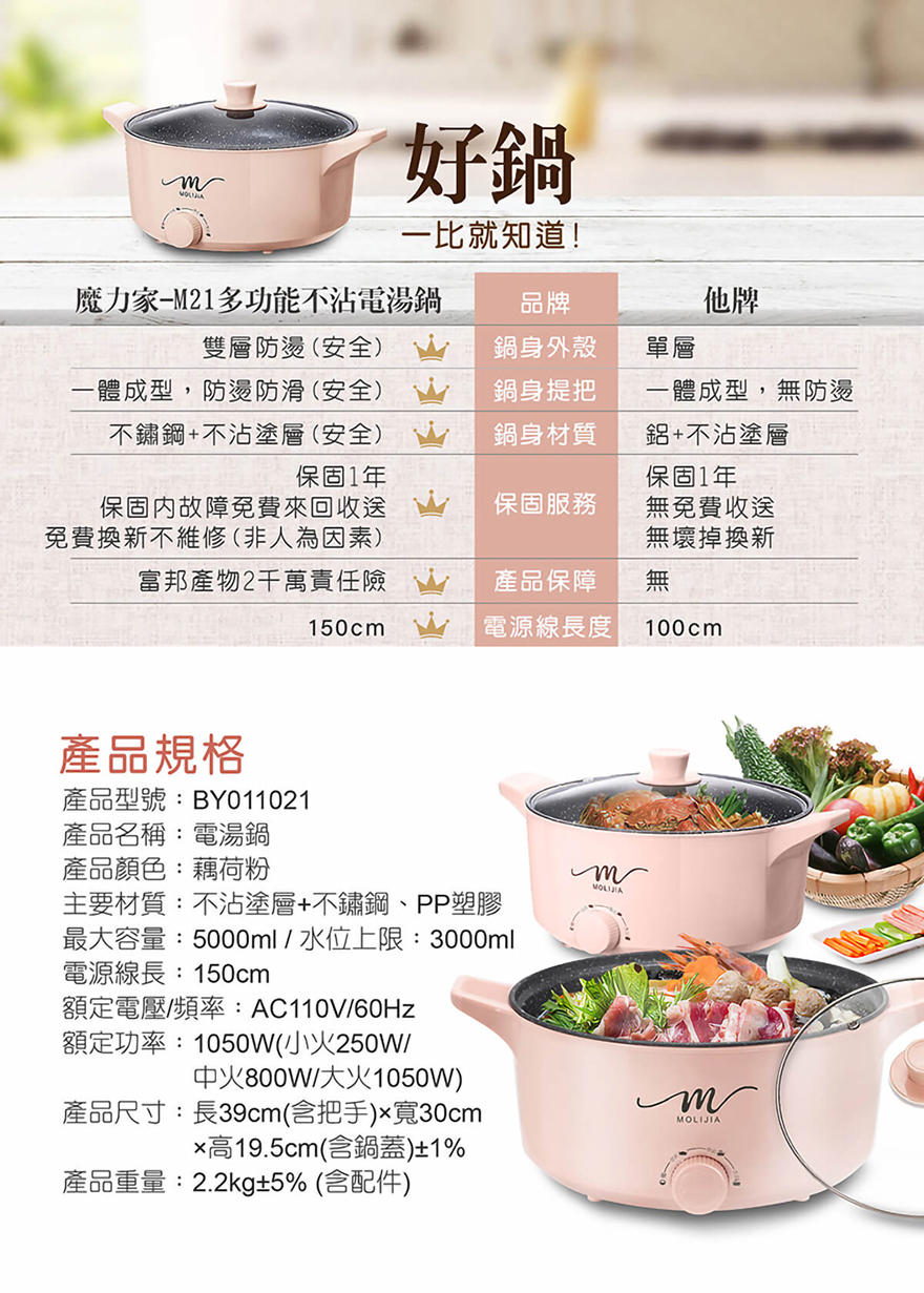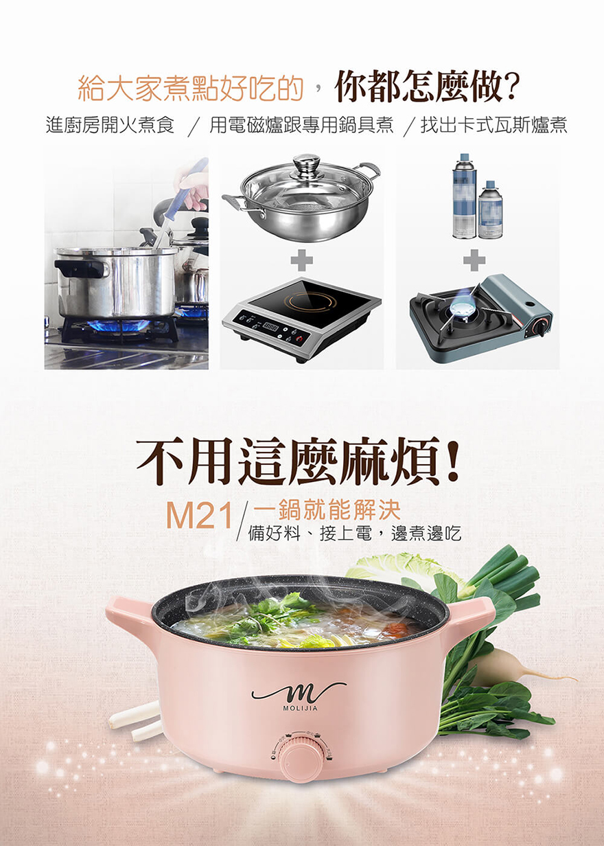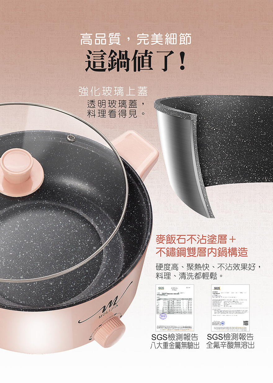 產品名稱:【MOLIJIA 魔力家】M21多功能不沾電湯鍋5L
