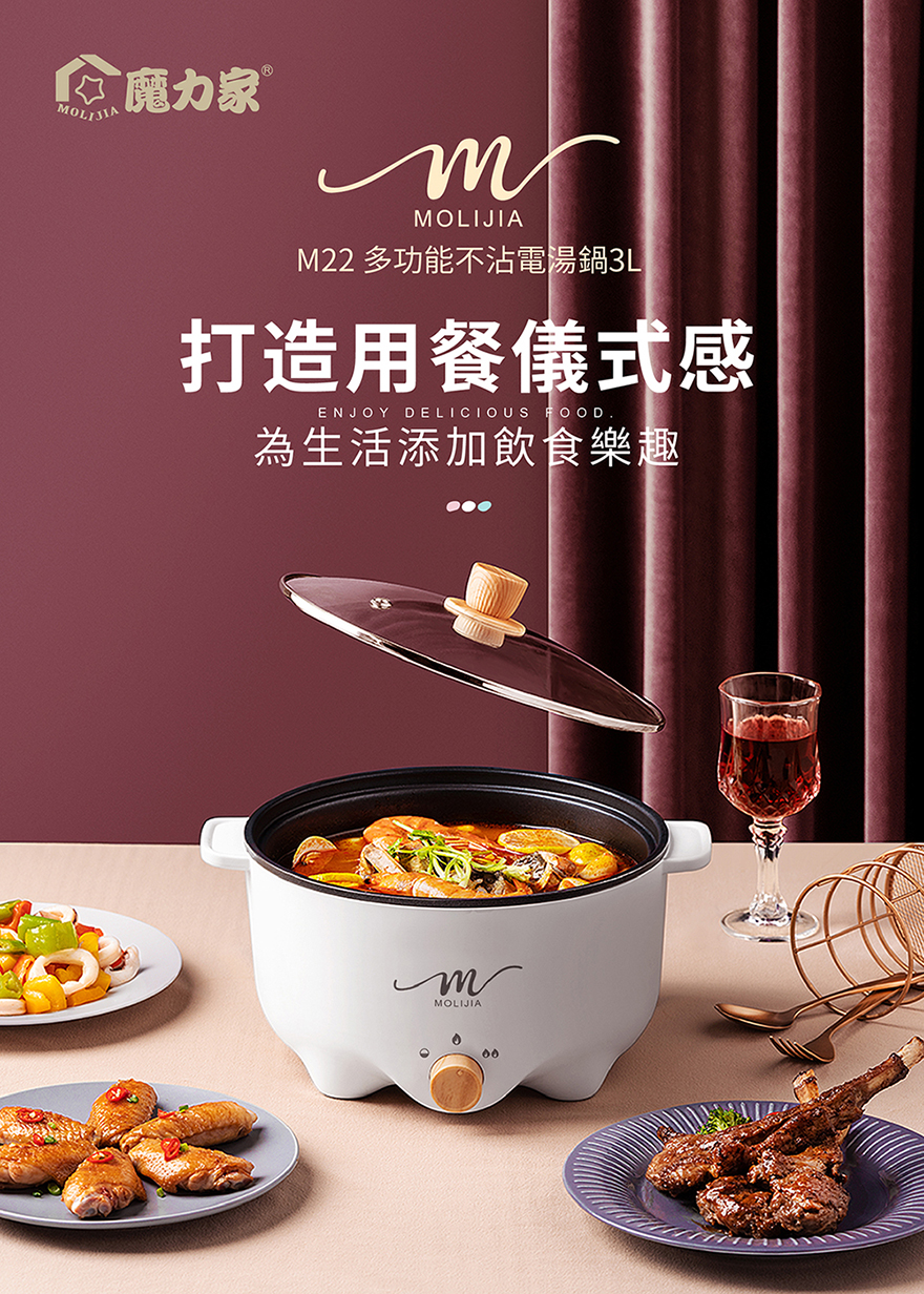 產品名稱:【MOLIJIA 魔力家】M22多功能不沾電湯鍋3L