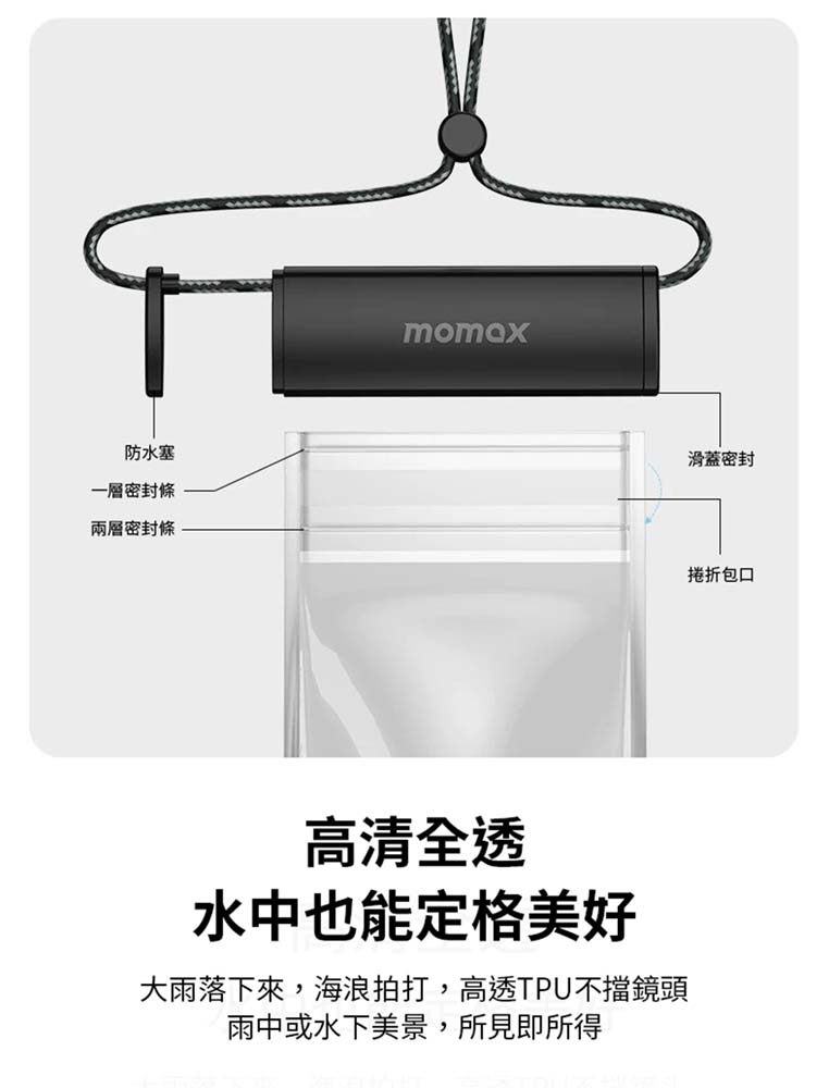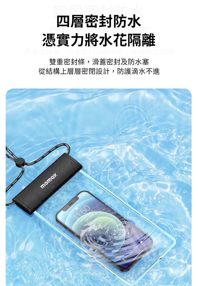[Shanshuizhibao] Momax Waterproof Phone Bag, IPX8 Waterproof Rating, Double-Layer Sealing Strip, Drip-Free, Suitable for Swimming and Diving, Touchscreen Dustproof, Original Factory Direct Product