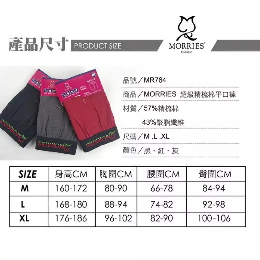 【MORRIES】細織精梳棉男平口內褲MR764(適敏感肌)男內褲