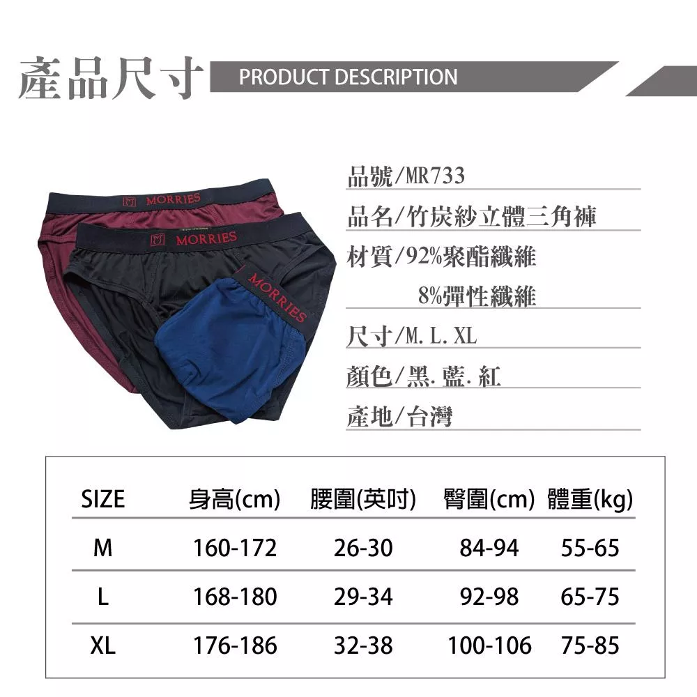 【MORRIES莫利仕】竹炭紗立體三角褲台灣製MR733