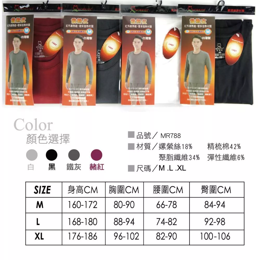 【MORRIES】男圓領透氣保暖發熱衣MR789