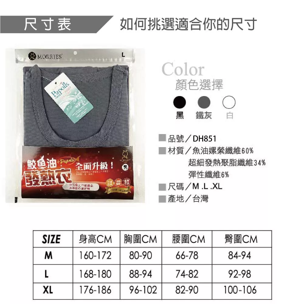 【MORRIES】男魚油運動透氣發熱衣DH851