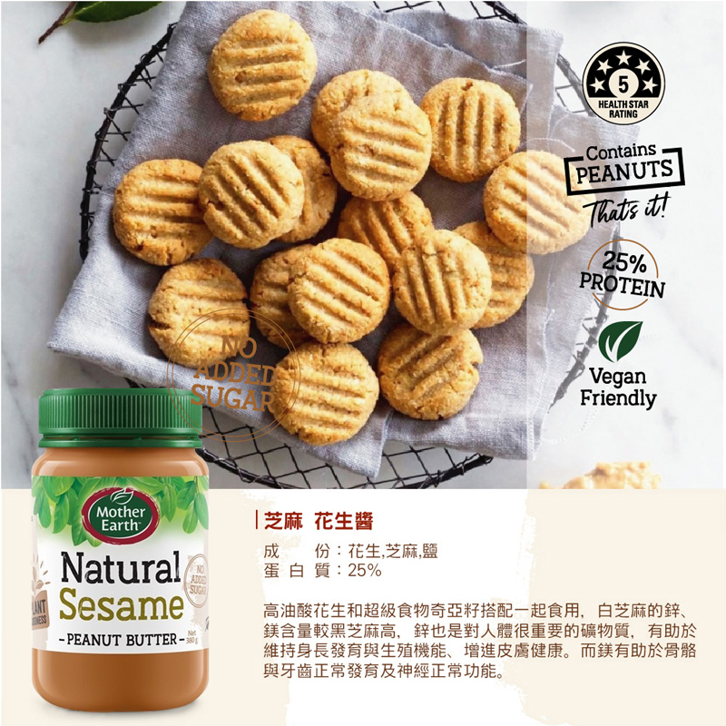 #紐西蘭#芝麻醬#抹醬#高油酸#涼拌#全素👉 全新包裝,全新式樣,新鮮上架✔採用紐西蘭高油酸花生, 不易變質 不加糖, 無多餘熱量, 只用些許鹽巴帶出花生的香甜 ~✔紐西蘭生產製造, 原裝進口來台, 鄉民熱搜最愛花生醬之一 !✔高油酸花生和白芝麻搭配一起享用,白芝麻的鋅、鎂含量較黑芝麻高,(鋅有助於維持成長發育與生殖機能,增進皮膚健康,鎂有助於骨骼與牙齒正常發育及神經正常功能)✔Mother Earth訴求天然, 產品皆極簡單純粹, 源自「大地母愛」👉芝麻花生醬成分:花生,芝麻,鹽• 內容規格 : 380g/瓶• 保存期限 : 1年• 有效日期 : 如包裝上所示• 原產地(國) : 紐西蘭■ 代理商: 好健康國際有限公司■ 代理商電話: 02-26755234■ 代理商地址: 新北市樹林區千歲街57-7號■ 投保產品責任險字號 : 1504 字第 11PD02948 號■ 食品業者登錄字號 : H-153997270-00000-7• 食用方式 : 可塗抹在吐司或依個人喜好食用• 注意事項 : 本產品含有花生, 不適合對其過敏體質者食用 • 保存方式 : 置於陰涼乾燥處, 22度以下避免陽光直射, 開封後請儘早食用, 以 免影響風味