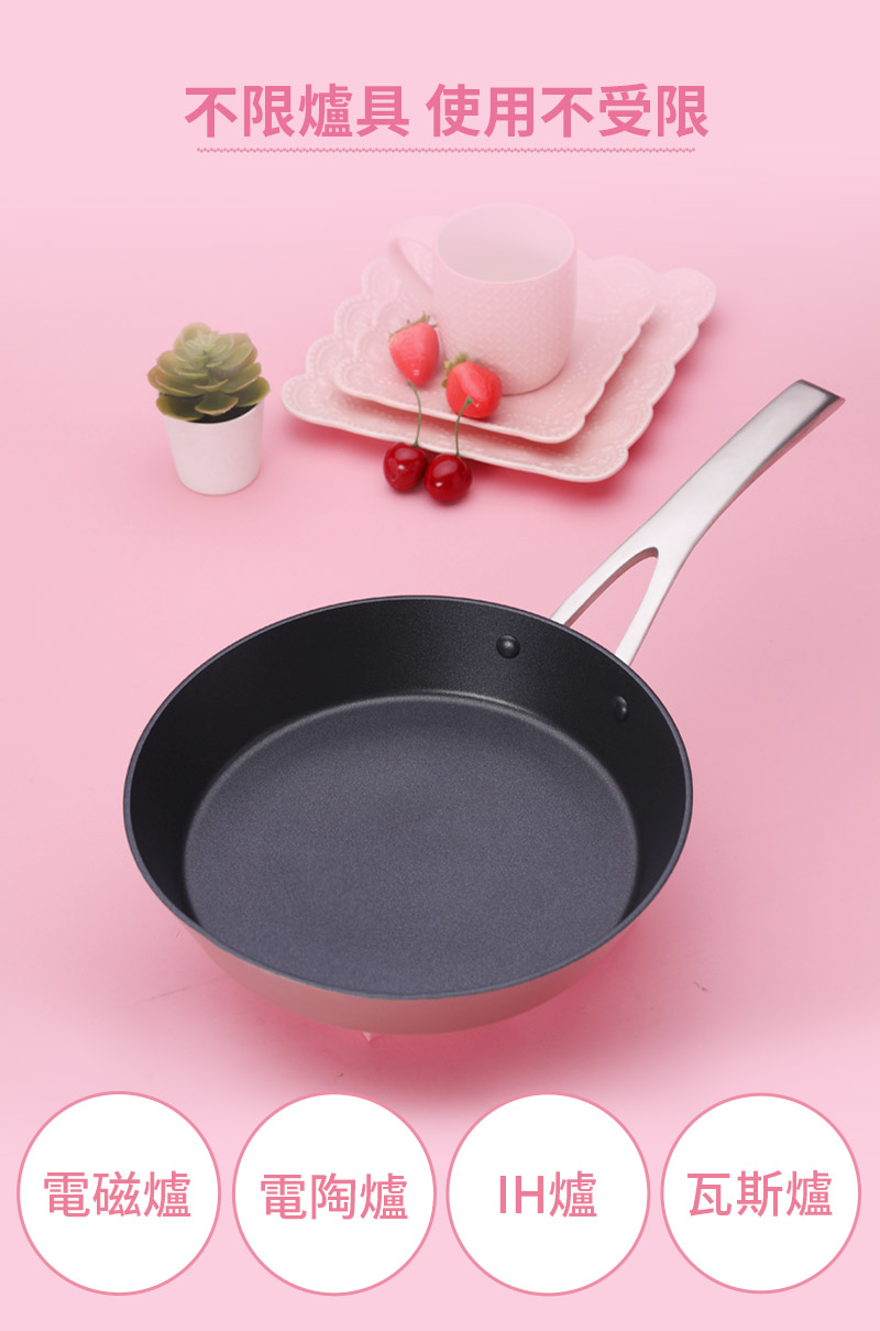 品名:粉品IH導磁不沾平底鍋(單)26cm+20cm+18湯鍋+強化玻璃蓋18cm用途:煎煮炒炸 食物烹飪材質:仿壓鑄造合金+不鏽鋼產地:台灣廠/中國