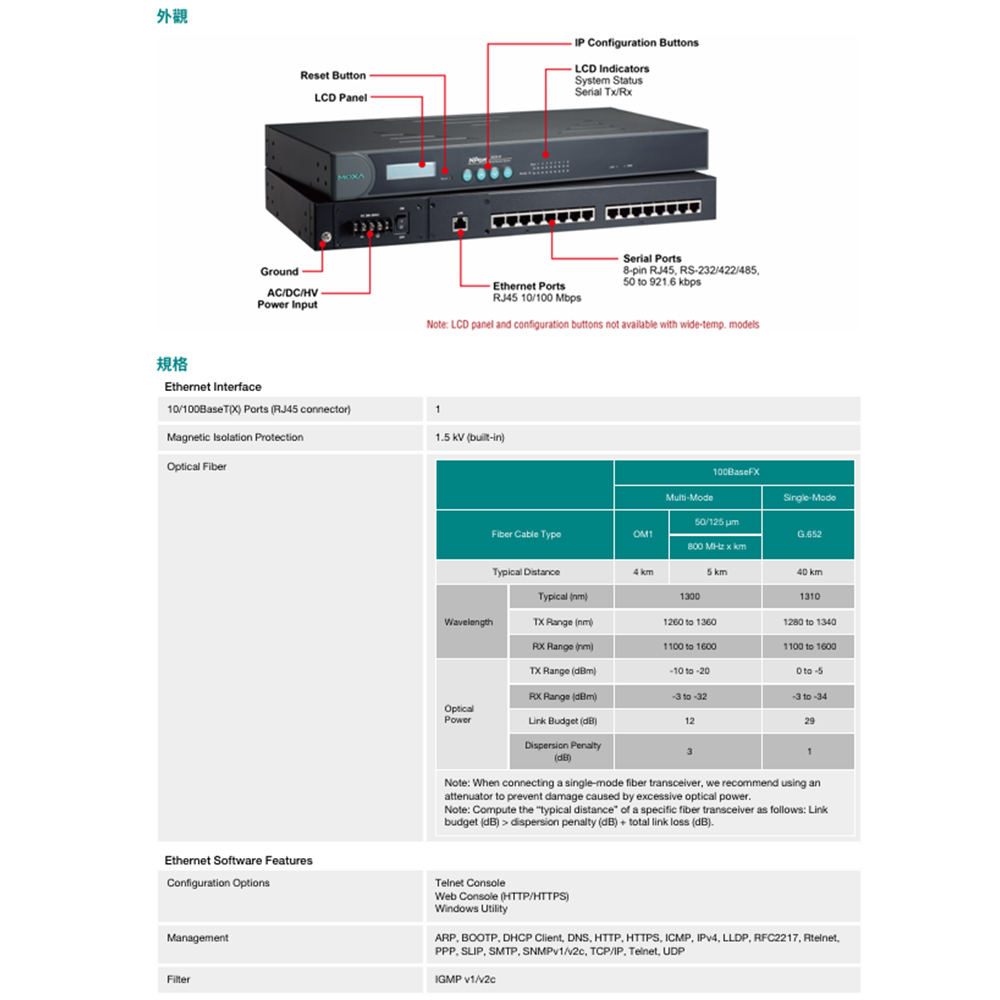 -使用LCD面板輕鬆設定IP位址(寬溫型號除外) 。