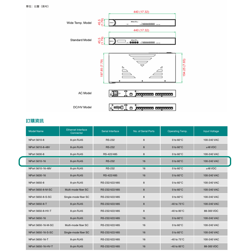 昌運監視器 MOXA NPort 5610-16 16埠RS-232機架式設備伺服器