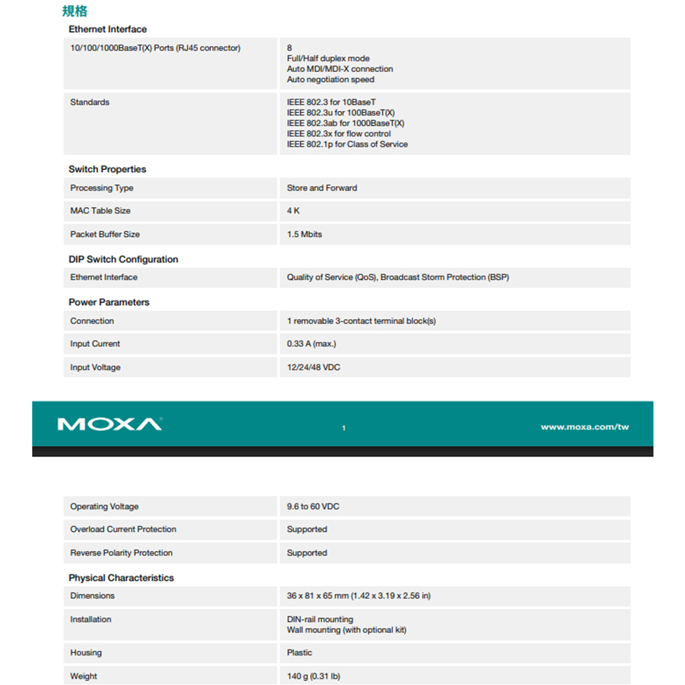 昌運監視器 MOXA EDS-G2008-ELP 塑膠外殼 8埠入門級非網管型 全Gigabit乙太網路交換器