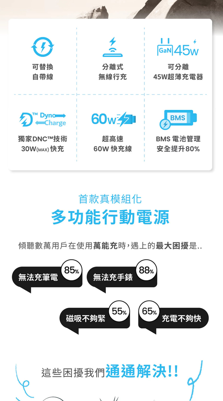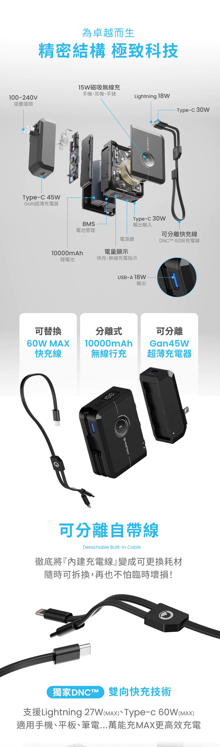 DNC技術,一對二充電線,支援 30W MAX 快充