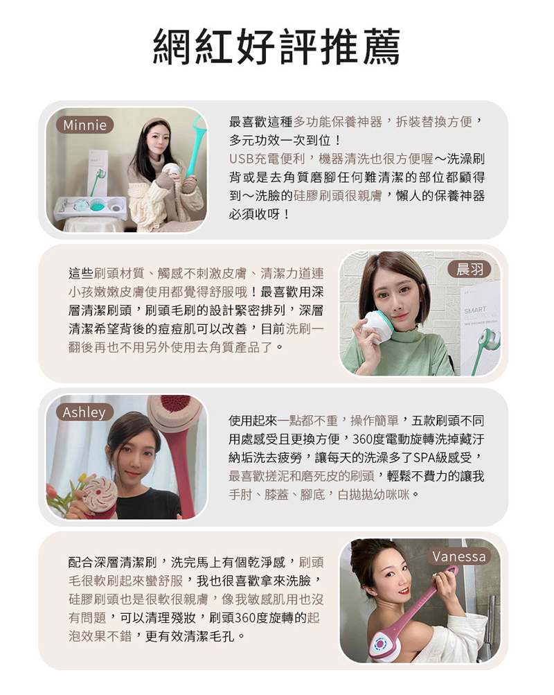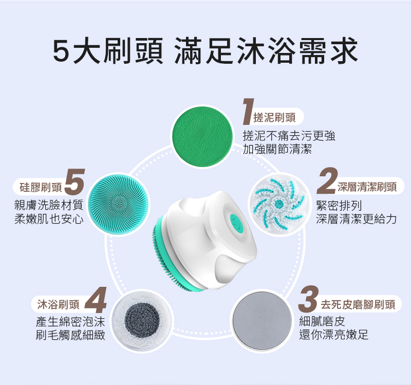 5大刷頭,深層去角質 煥活肌膚水嫩力
