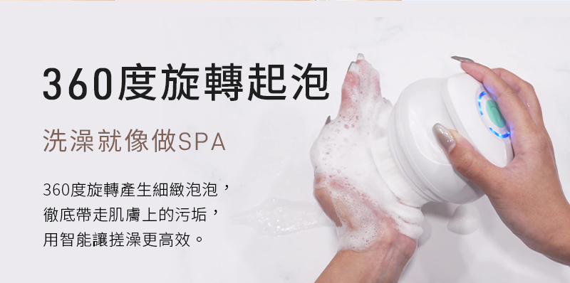 刷頭360度旋轉自動起泡,深層清潔毛孔