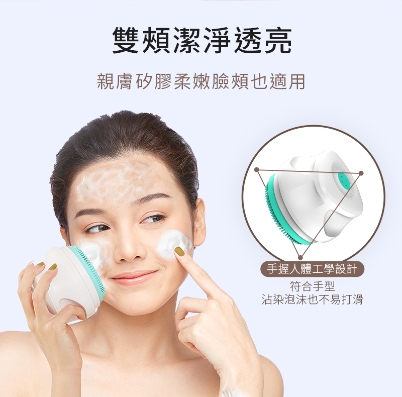 刷頭360度旋轉自動起泡,深層清潔毛孔