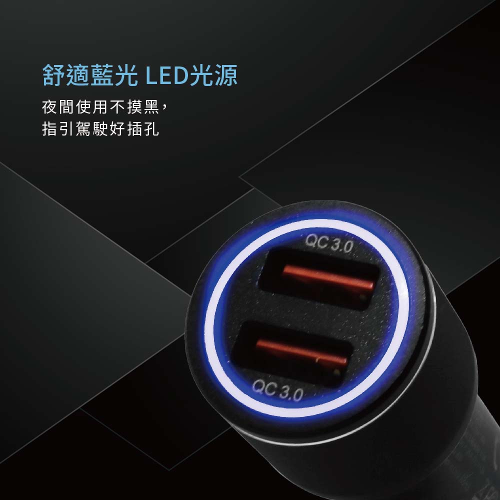 • 柔光指示燈,插入點煙器後亮起,暗光也能正常使用