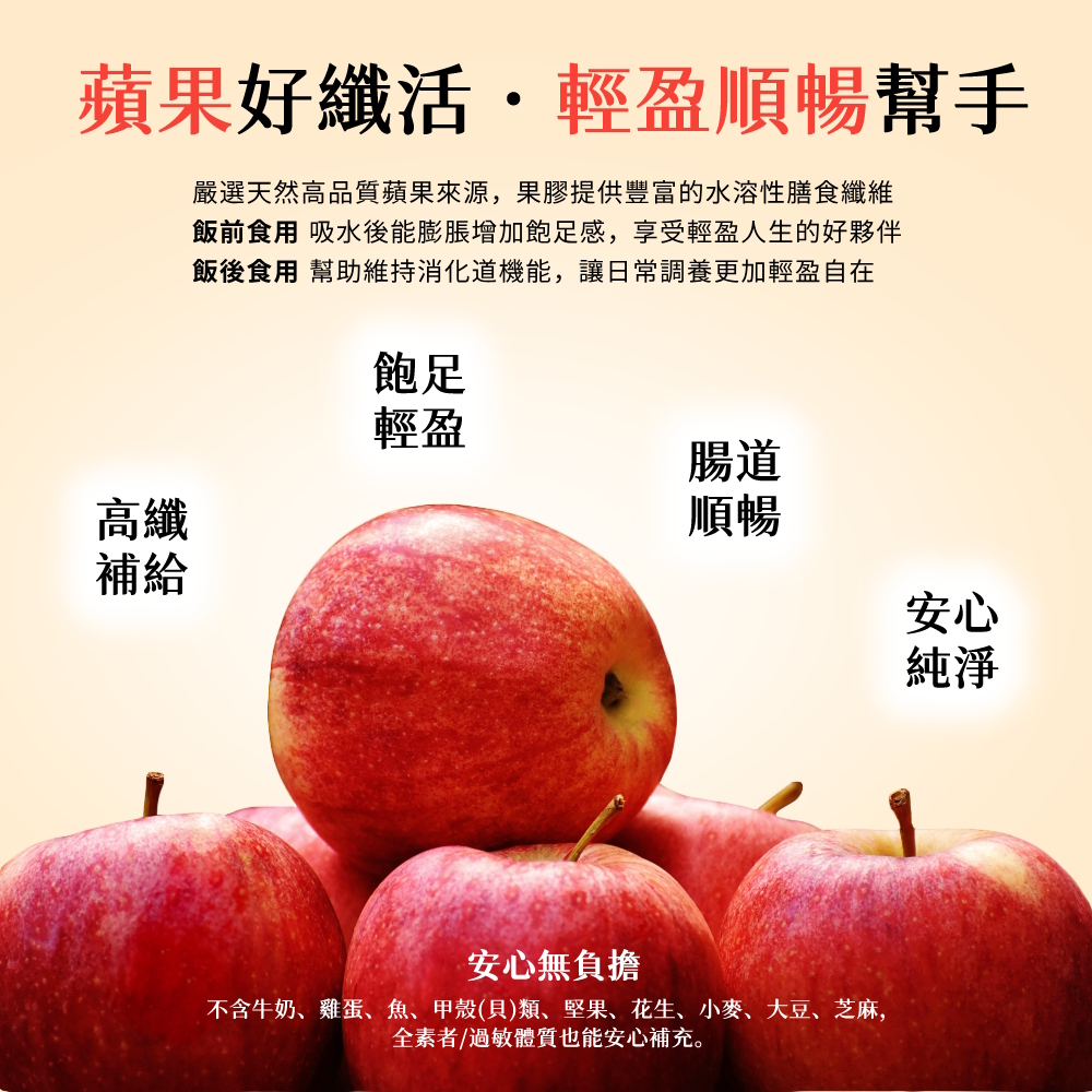 ✳️產品介紹想追求更美好的自己,展現健康自信的風采嗎?NaturesPlus 天然佳「輕盈美型・蘋果果膠錠」,嚴選天然高品質蘋果來源,提供豐富的水溶性膳食纖維,是您享受輕盈人生的好夥伴。根據衛福部食藥署指引,膳食纖維有助於增加飽足感,可作為您飲食管理的優質輔助。此外,它能促進腸道蠕動,便便比較柔軟而易於排出,幫助維持消化道機能。本產品亦可幫助調節生理機能,促進新陳代謝。建議搭配均衡飲食與適當運動,讓您輕鬆面對挑戰,維持理想體態。✳️產品特色🍏優質天然來源:每份提供 500 毫克的蘋果果膠,精華萃取自天然新鮮蘋果。🍏幫助增加飽足感:豐富的水溶性膳食纖維,可作為飲食管理的輔助,讓您輕鬆面對挑戰。🍏維持消化道機能:可促進腸道蠕動,使排便順暢,幫助身體維持日常的清爽感受。🍏促進新陳代謝:有助於維持醣類正常代謝,幫助調節生理機能,為您的健康打底。🍏純淨配方、無人工添加:不含人工香料、色素與防腐劑,給您最純粹的營養。🍏國際品牌 安心可靠:NaturesPlus 天然佳遵循高標準製造流程,品質安全有保障。產品介紹購買公司貨,隨貨附發票;買的放心,食在安心。【NaturesPlus 天然佳】 台灣總代理