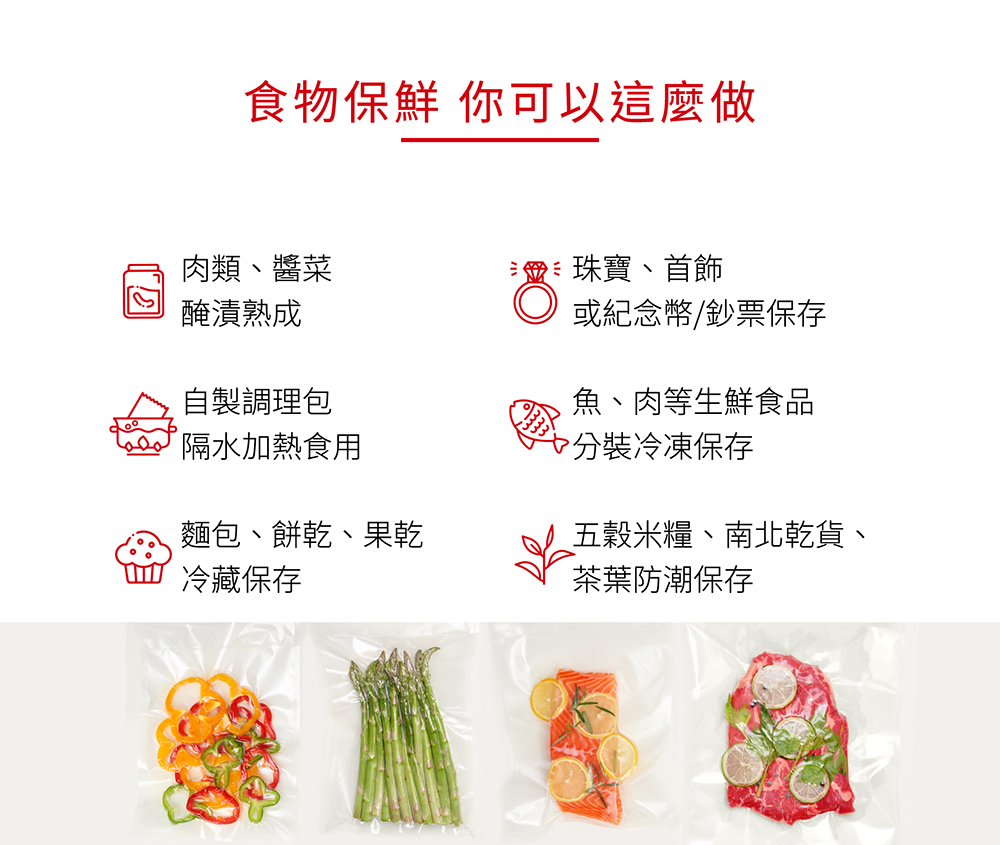 4. 輕便無線、食品隨時隨地輕鬆保存專利真空袋可幫助空氣完全吸出。