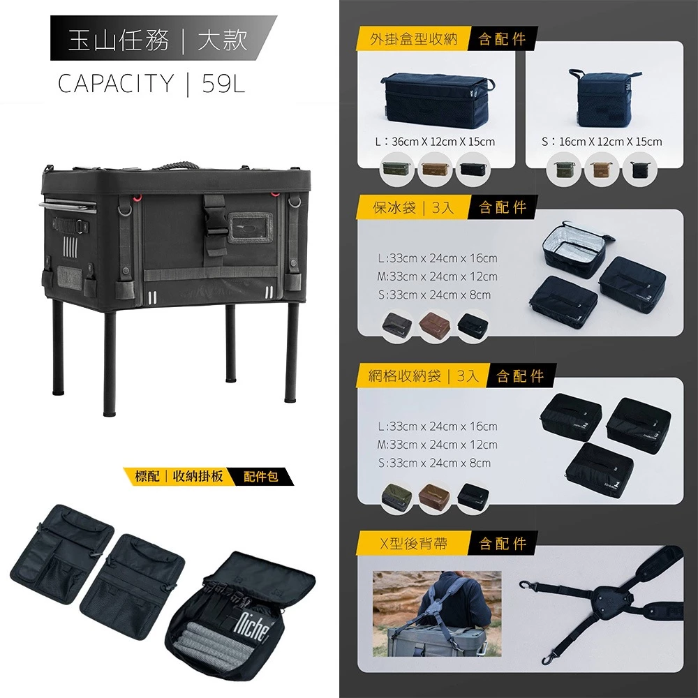 無論是『品味戶外生活』X『山野頂峰探險』X『風格車泊體驗』多種車載、置地、後揹型態,皆能讓你優雅轉場,盡情探索海湖山野!