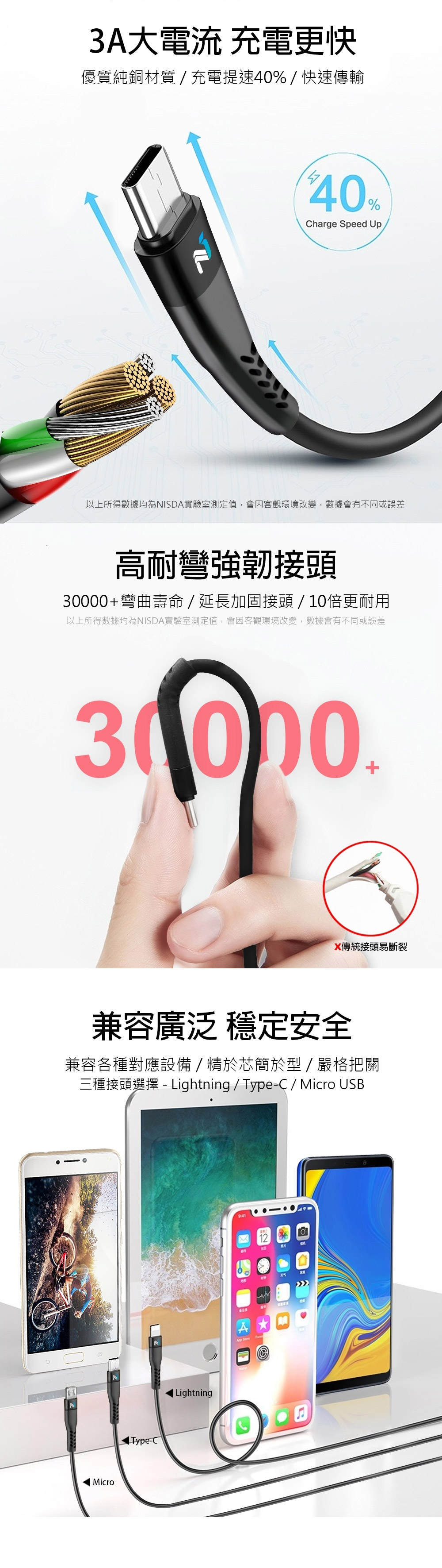 ‧接頭加固,強韌高耐折。‧純銅線芯,3A高速傳輸。‧智能芯片,充電更安全。‧環保材質,柔韌不斷裂。‧三種接頭,兼容所有設備。‧三種長度,適合所以場合。規格說明‧品名:OWEIDA 編織漁網線/5A‧接口類型:Lightning、Type-C、Micro USB‧線長:120cm、20cm‧重量:24g±5‧材質:TPE、金屬‧數量:一組1入‧產地:中國注意事項‧商品會依螢幕不同而有色差,商品請以實際收貨為主。‧新品瑕疵請於7日鑑賞期內退換,退換貨請將商品及完整包裝退回。