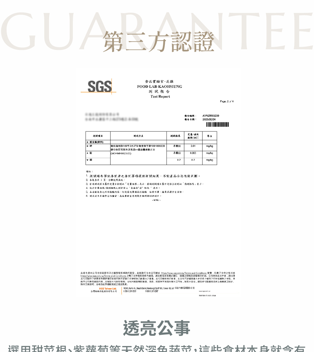 1.原料採自天然食材製成,會因季節產生顏色及味道變化,如有沉澱或色差屬自然現象,敬請安心食用。請勿放置密閉高溫空間內。