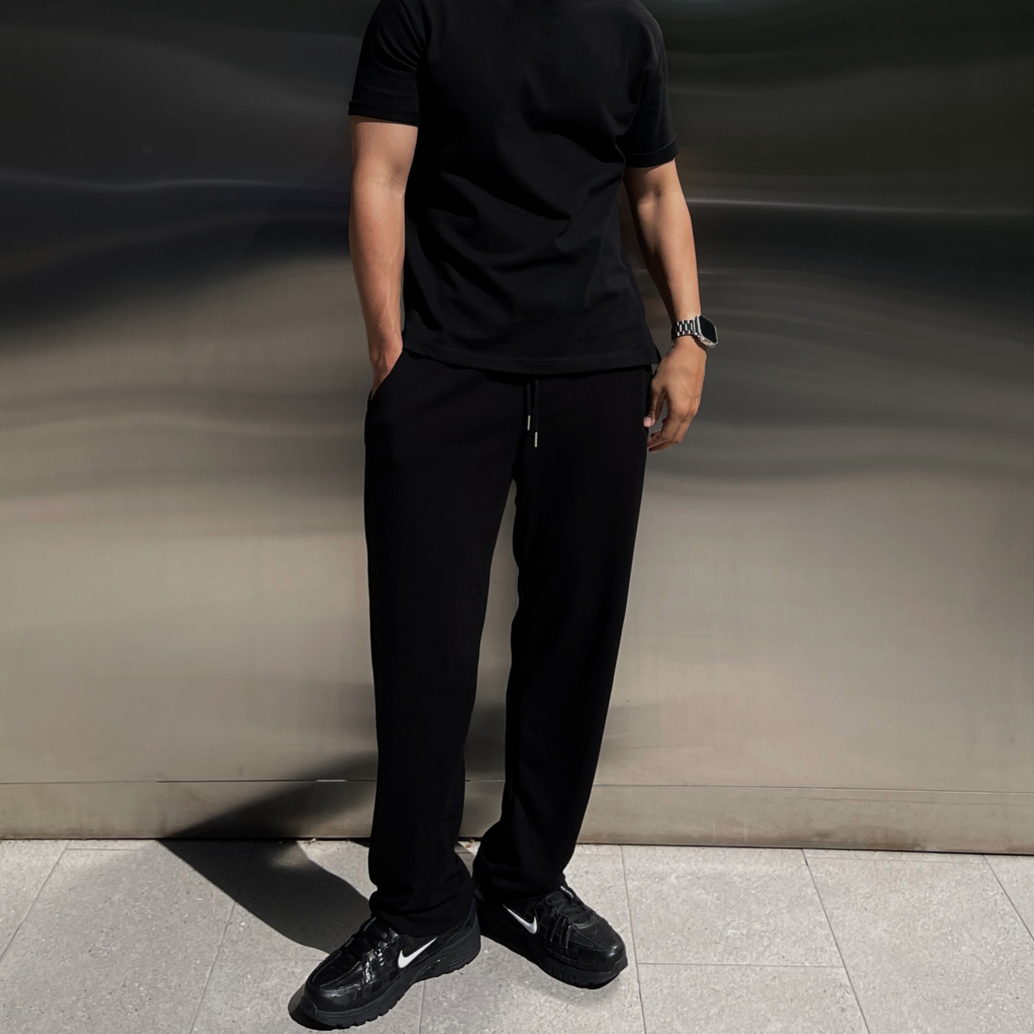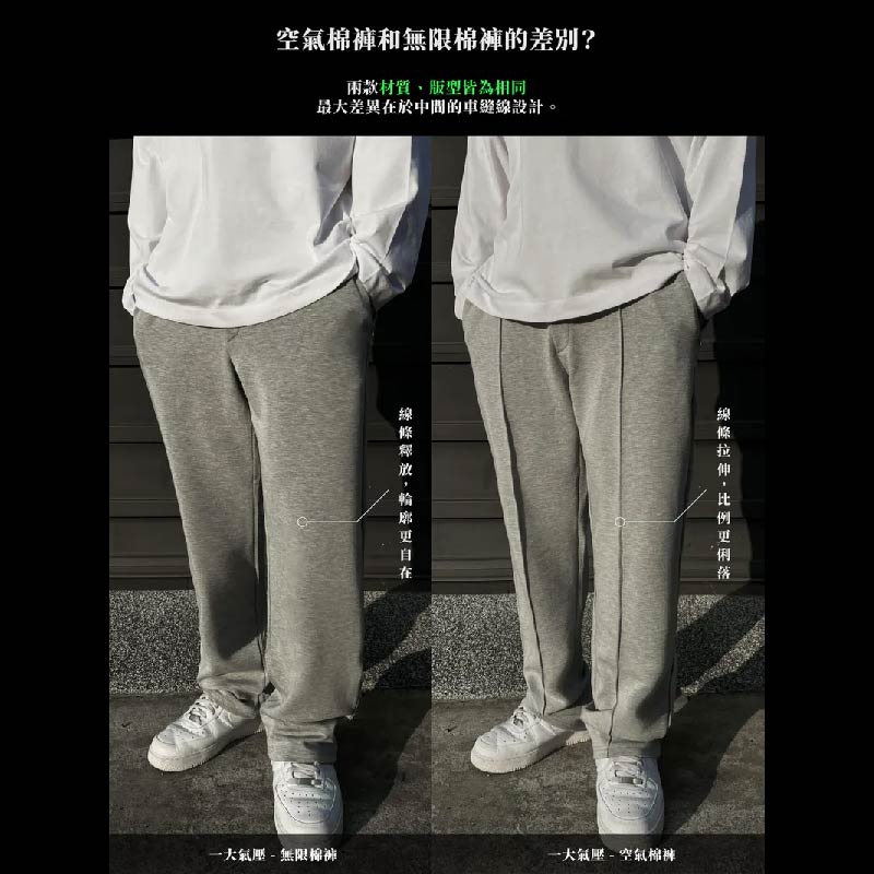 延續空氣棉褲的立體版型與高密度彈性布料,移除中線摺痕, 保留俐落輪廓與舒適延展。