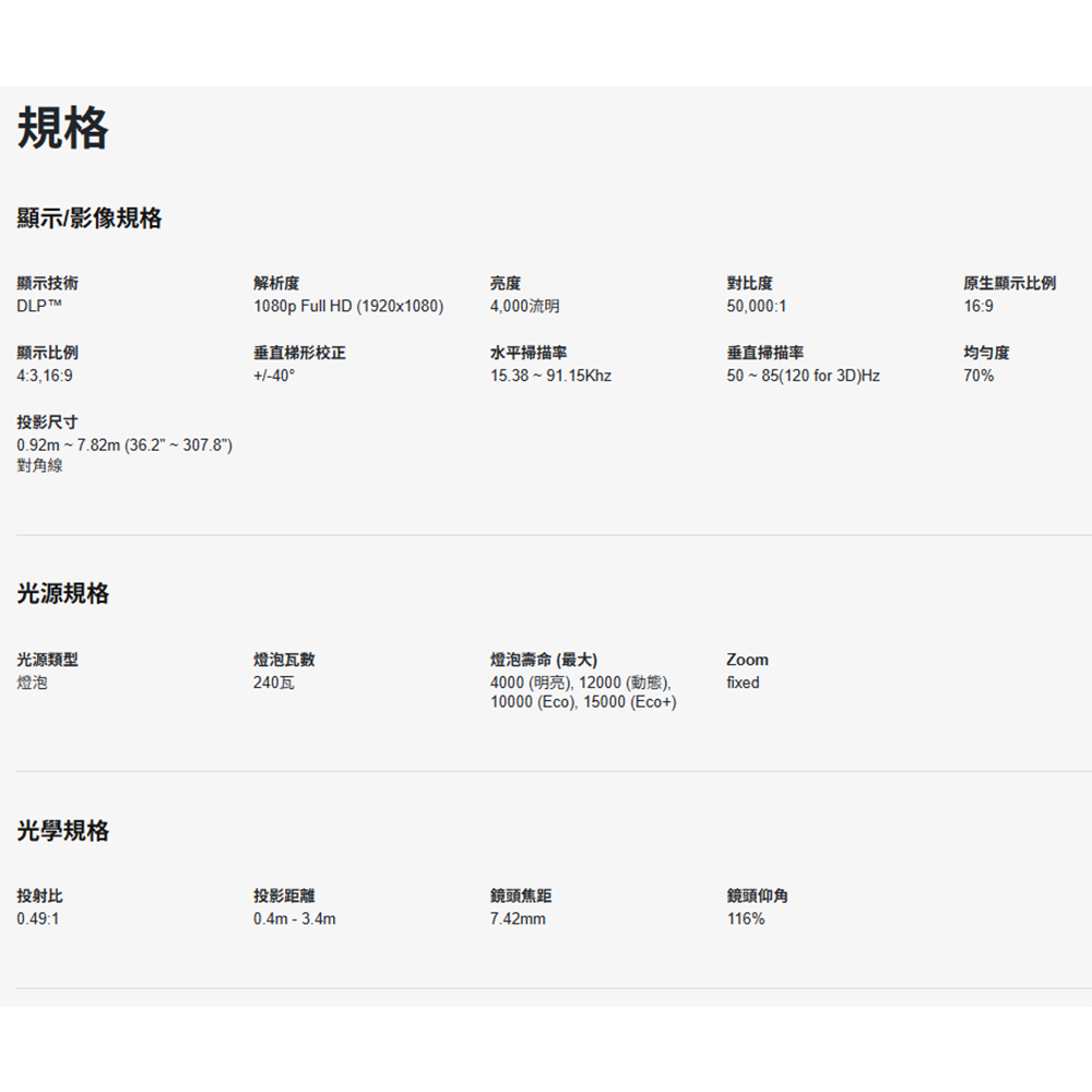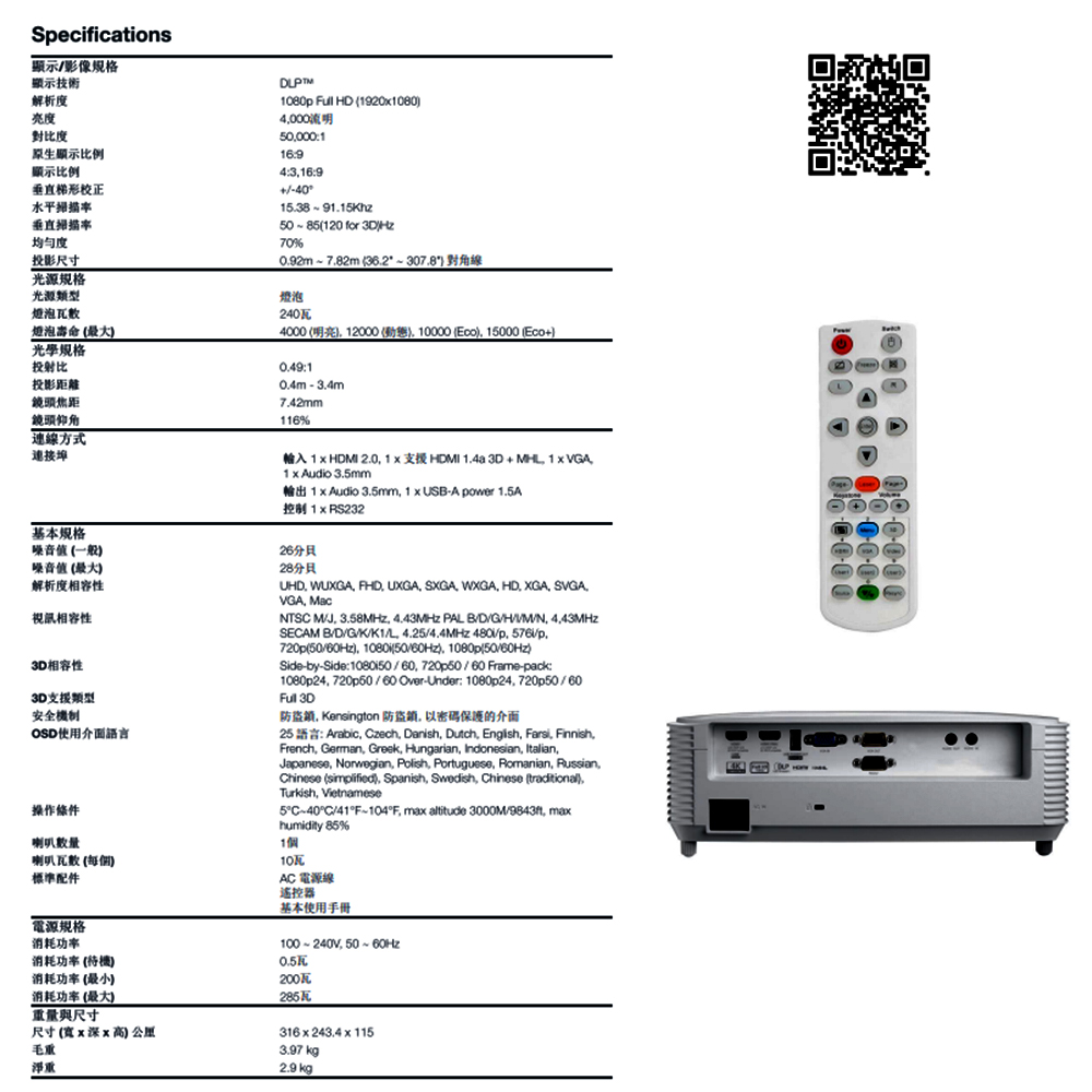 在任何時間以Full HD 1080p輕鬆投射明亮、鮮明的簡報。這款短焦投影機是專為小型會議室和教室而設計,具有令人驚豔的色彩、長燈泡壽命和節能功能,可降低整體擁有成本。