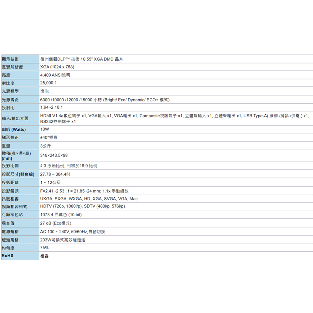 昌運監視器 OPTOMA TP401X XGA 多功能投影機