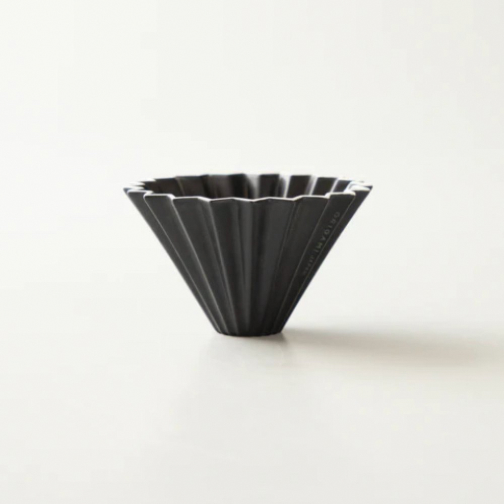 本商品為陶瓷濾杯+深色木質杯座的組合。不同於傳統常見的「扇形」濾杯,ORIGAMI 的特點是漂亮的「圓錐形」,底部一個大出水孔。瓷器的熱傳導率高,非常適合悶蒸,圓錐型構造讓咖啡粉在熱水中浸泡的時間拉長,咖啡粉膨脹,帶出咖啡中的濃郁芳香因子。「三分之二」是台灣總代理,敬請安心選購。