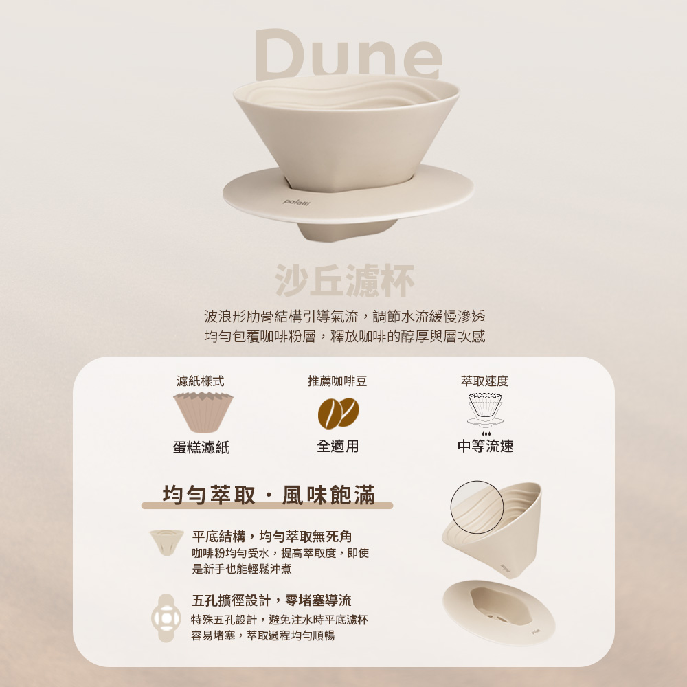 【palatti】全陶瓷萬能咖啡濾杯,採用德化瓷製成,在 1300°C的高溫下燒製,不含鉛、不含鎘,密實結構不吸附異味,沖煮出的咖啡風味乾淨,可用洗碗機清洗,並符美國FDA 和 加州65提案的標準。