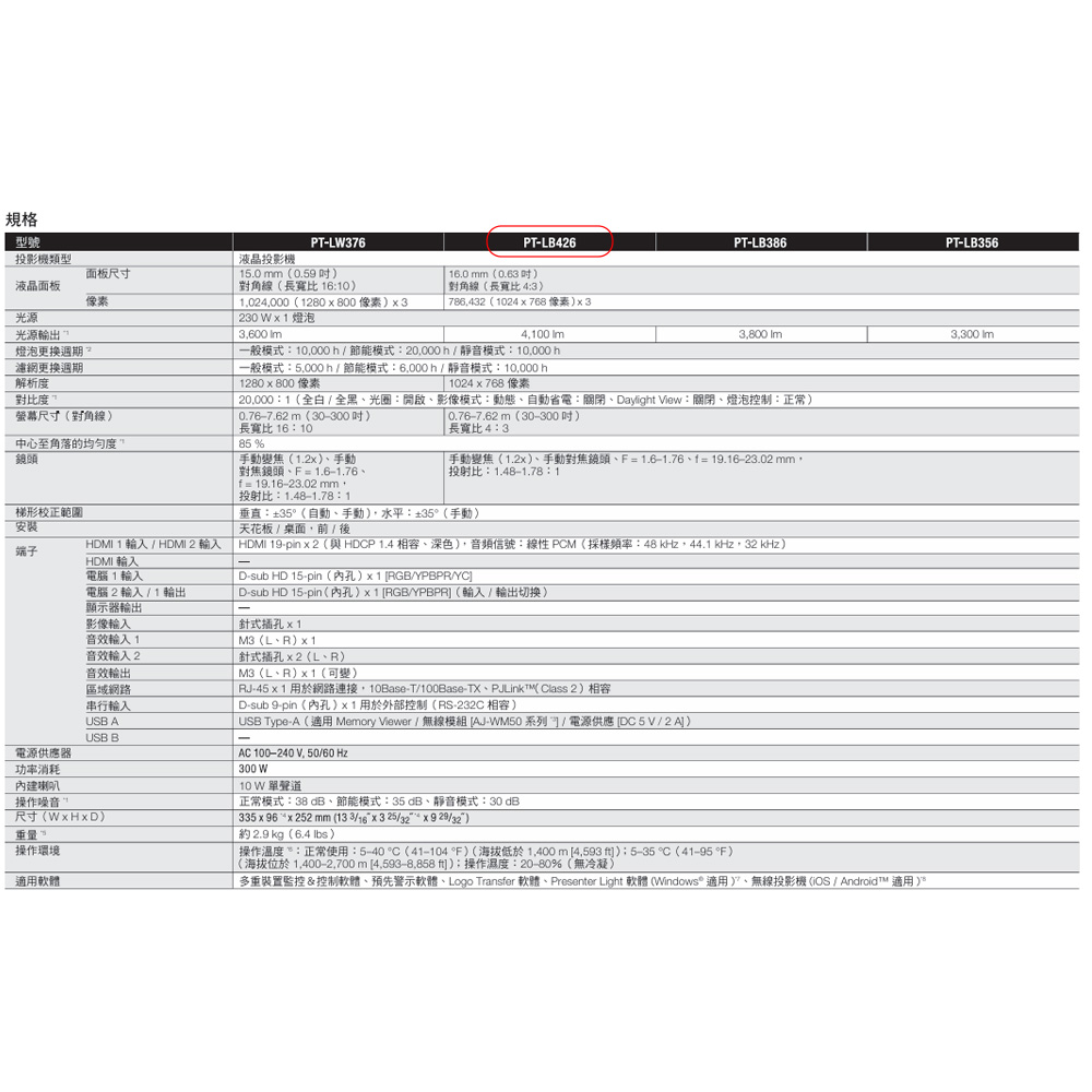 昌運監視器 Panasonic PT-LB426T 4100流明 XGA解析度 3LCD 可攜式投影機