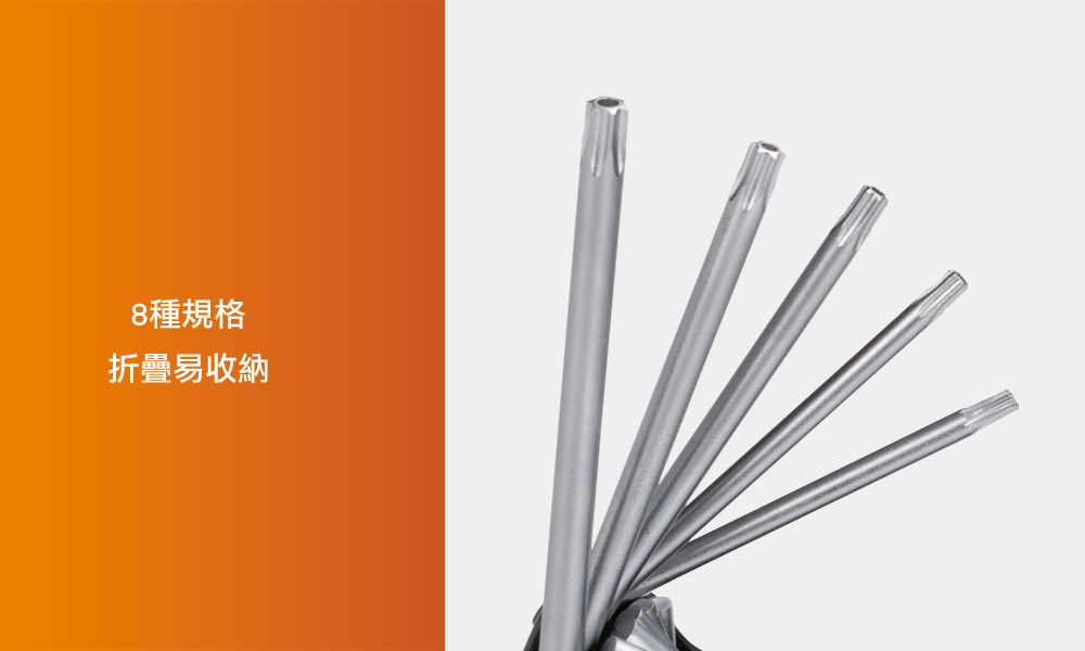 產品介紹 產品特色: 台灣製造8件式折疊式星形扳手組 隨身攜帶超方便 扳手以鉻釩鋼材質製造,高扭力 硬度52~58度 本體以鍍鉻處理,不易生銹 耐用、省力
