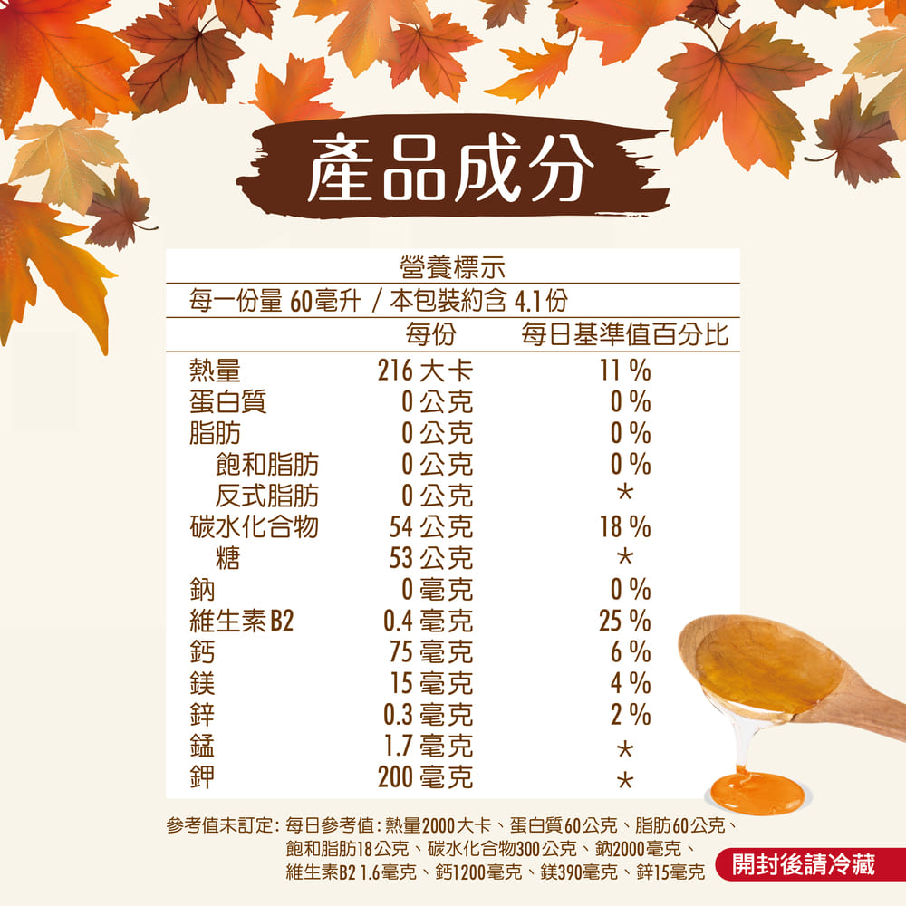 楓糖漿是一種健康的天然甜味劑,它不含油脂、人工色素等添加物。加拿大人民引以為傲的健康特性使得楓糖漿在世界各地非常受歡迎。