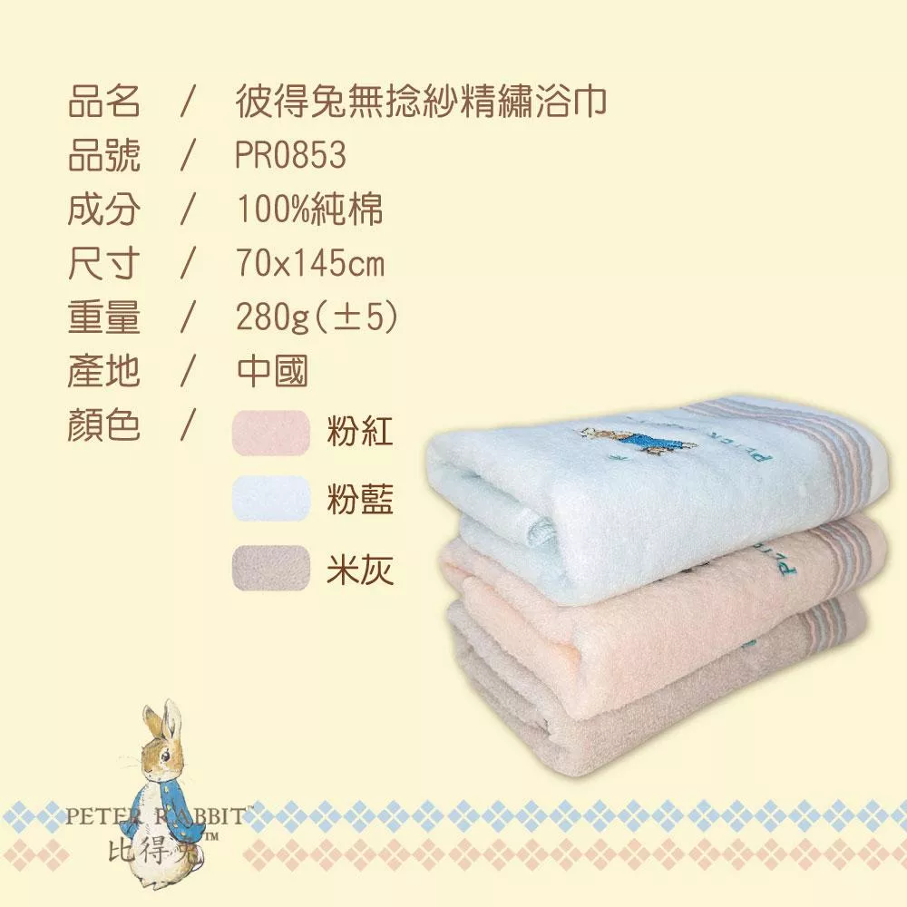 【PETER RABBIT】 比得兔純棉無捻紗緞紋精繡純淨系浴巾PR0853