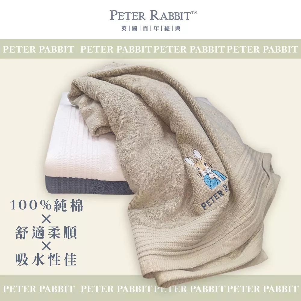 【PETER RABBIT 比得兔】純棉無捻紗緞紋精繡純淨系浴巾PR1256