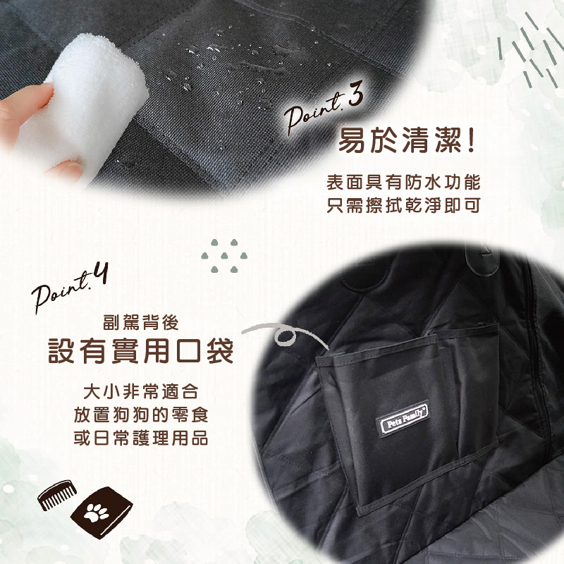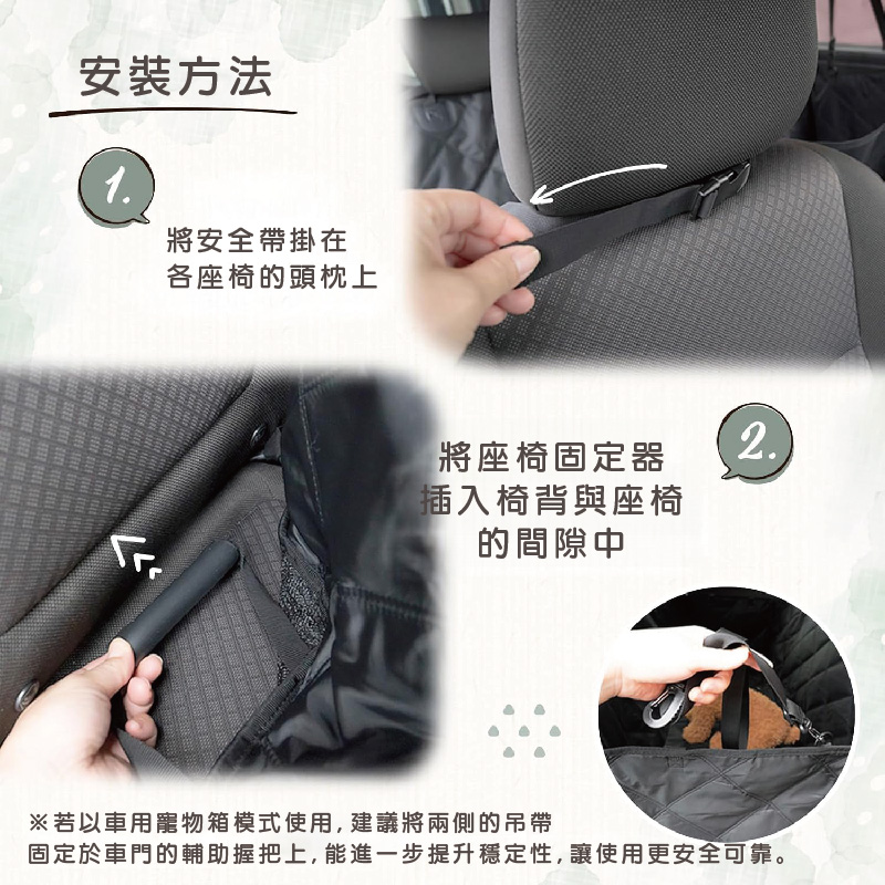 🛡️ 全方位保護後座座椅有效防止毛髮、髒污、抓痕、濕漬與異味,避免寵物乘坐時造成座椅損耗。