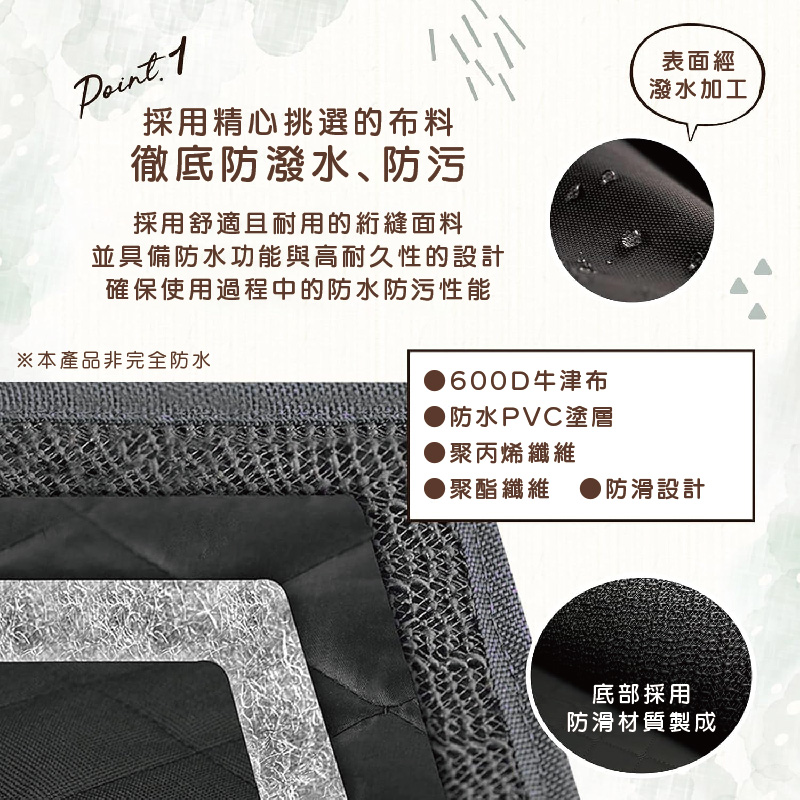 💧 防潑水易清潔材質防潑水表層設計遇水不滲透,寵物尿液或飲水飛濺也不易滲入,清潔更容易。