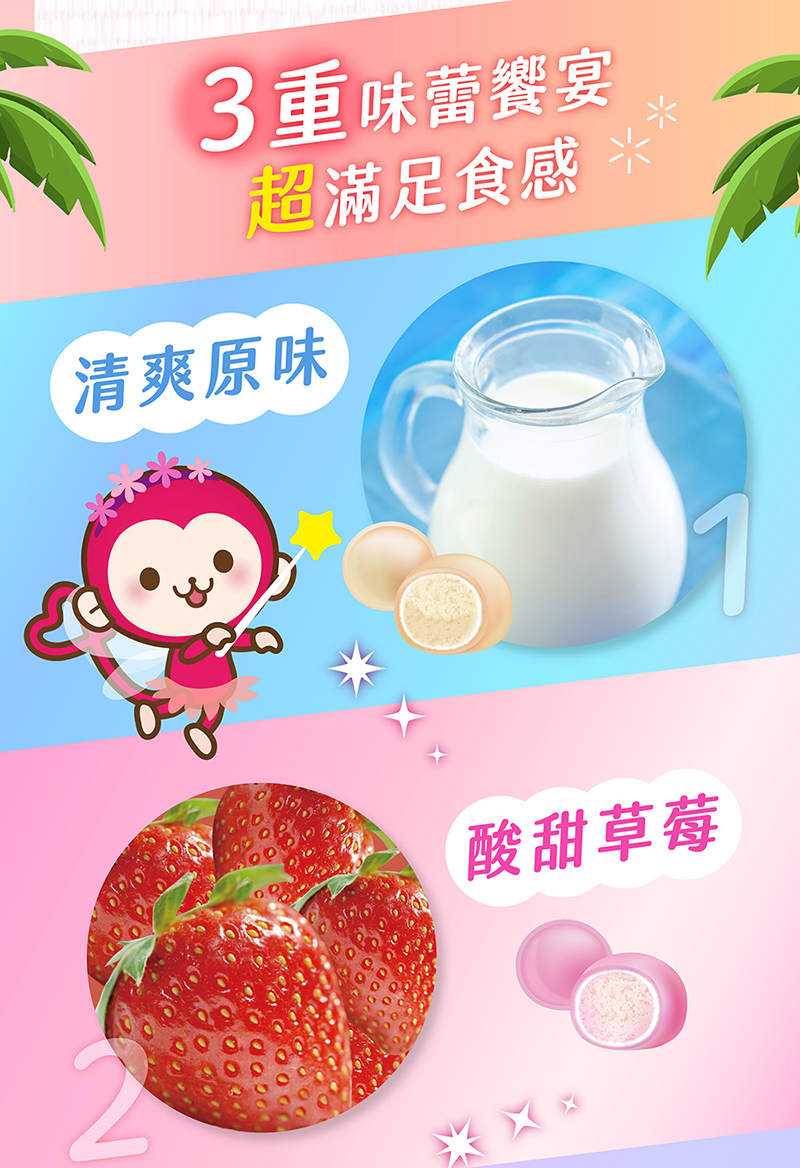 原味、葡萄、草莓3種口味皆清爽香甜,讓人愛不釋手。