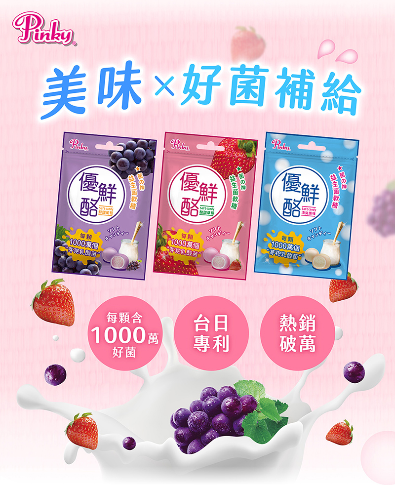 原味、葡萄、草莓3種口味皆清爽香甜,讓人愛不釋手。