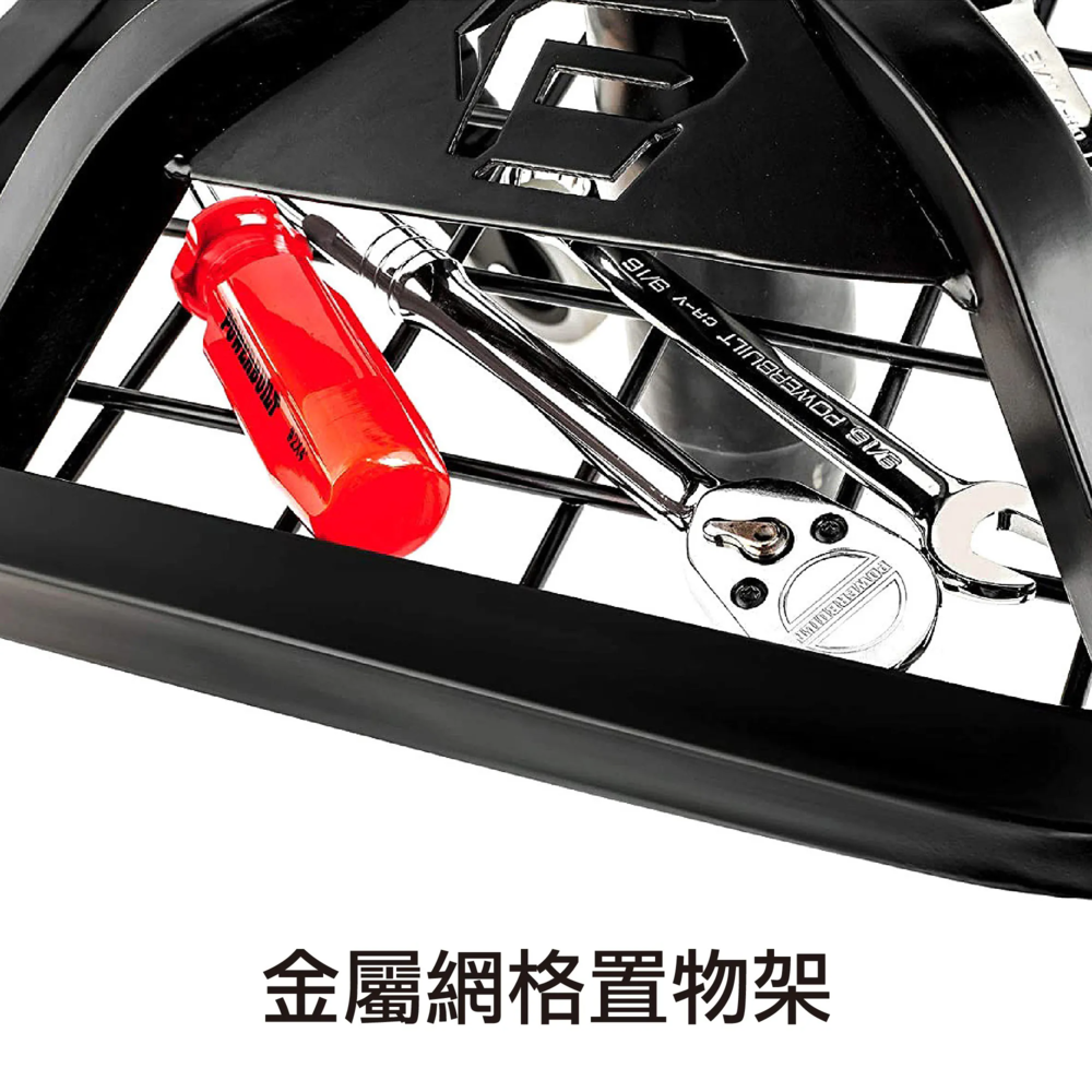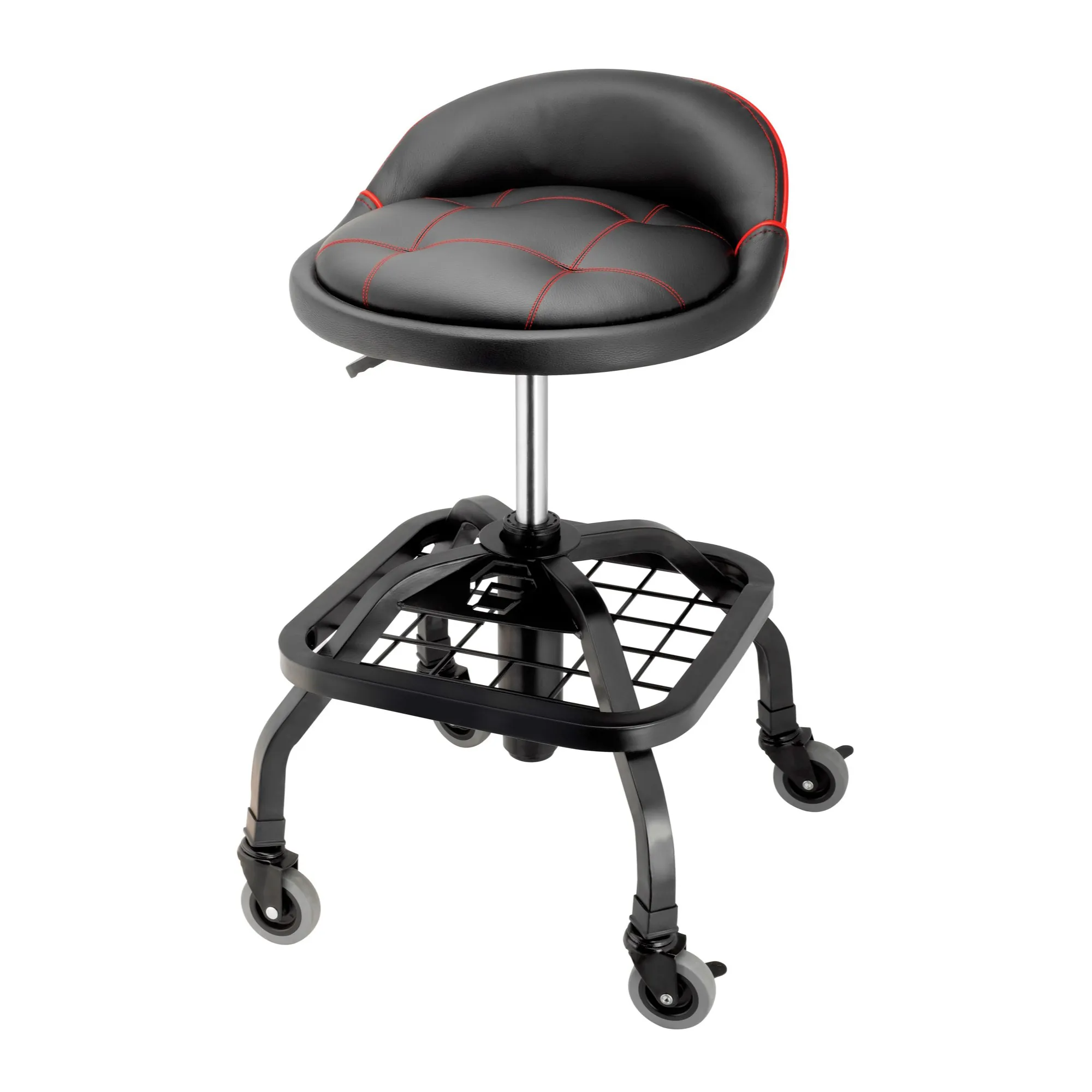 Powerbuilt 舒適工具椅由合金鋼方管底座構成,具有穩定和耐用特性,可乘載最重150公斤。座椅下方的網狀金屬架,設計用於存放常用工具與擺放較大物品。Powerbuilt 舒適工具椅使用氣壓升降系統,可調整高度於50公分至63公分內。帶煞車功能 4 個橡膠腳輪在瓷磚和木地板上滑動不會留下任何痕跡,並可以在任何堅硬表面上順暢移動。座椅腰靠設計大大提升乘坐時對臀部和下背部的支撐,有助於保持正確的姿勢,長時間工作不感到疲累。