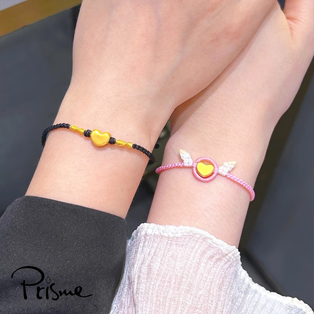【Prisme Gold】黃金手鍊 愛心 編繩手鍊 情侶對組 (金重:約0.04錢±0.02)