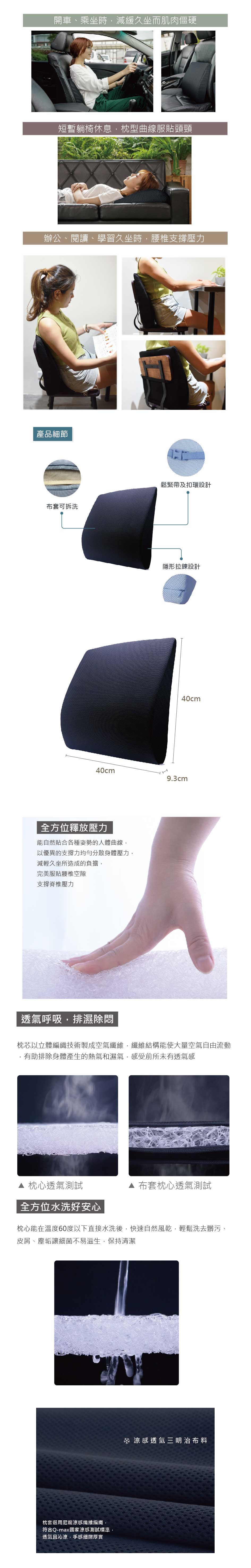 |枕心可水洗|4D空氣纖維舒腰枕(黑) 頭枕 椅靠枕 超透氣