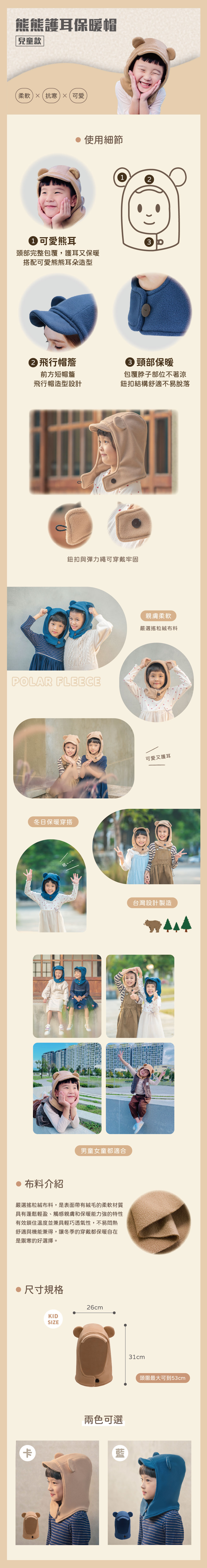 給寶貝滿滿的冬日溫柔※嚴選搖粒絨布料,保暖聚熱佳※護耳+保暖設計:完整包覆頭部與耳朵,防風不怕冷※脖子鈕扣設計,穩固不滑落,跑跳玩耍也安心※布料柔軟親膚不會掉毛,清洗方便,可手洗或機洗