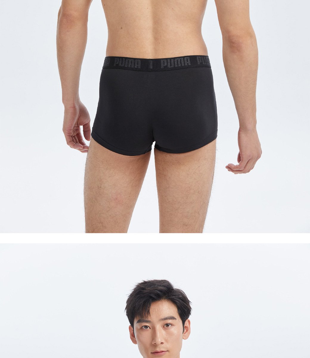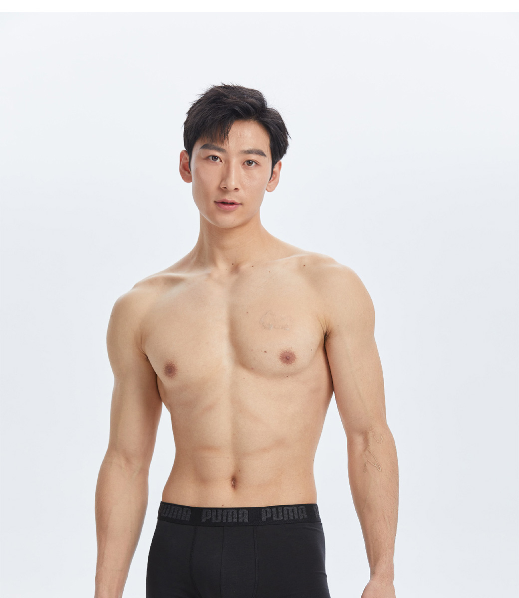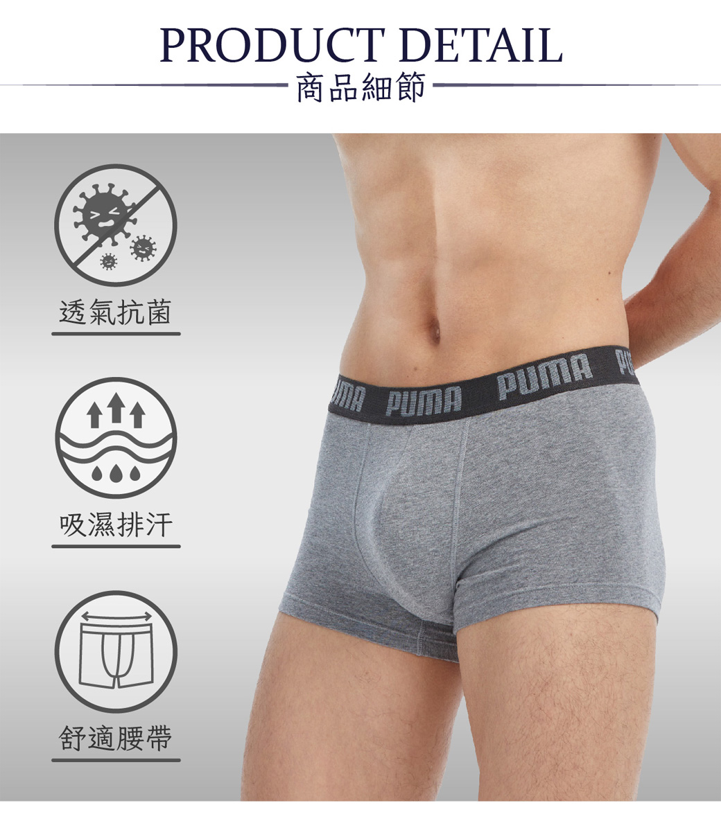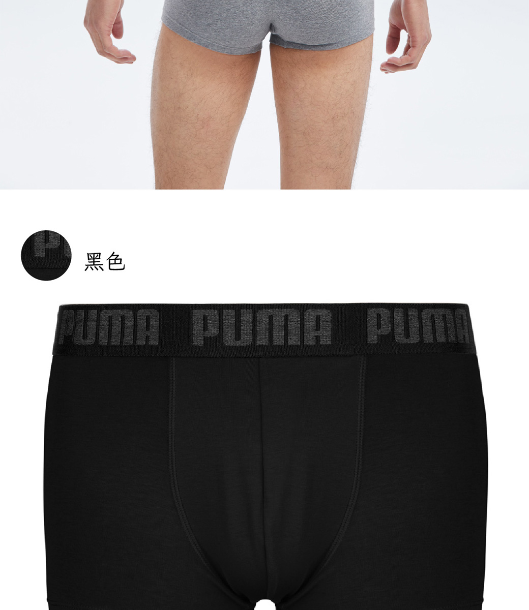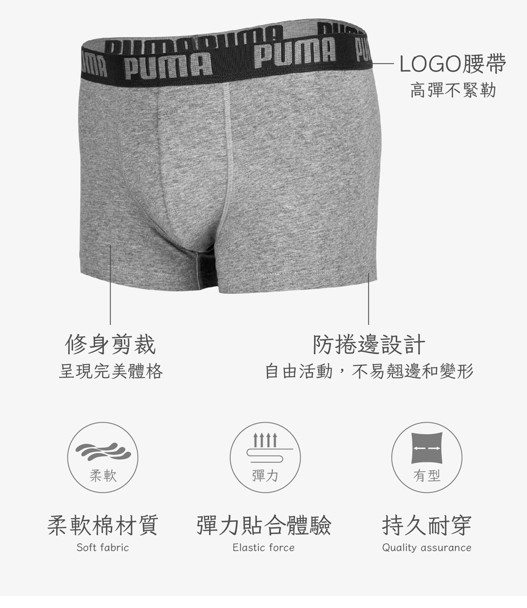 PUMA 平口內褲 1件組 彪馬 跳豹 男內褲 平角內褲 修身 防捲邊 貼合 耐穿 柔軟 棉質 排汗 透氣 抗菌 黑 灰